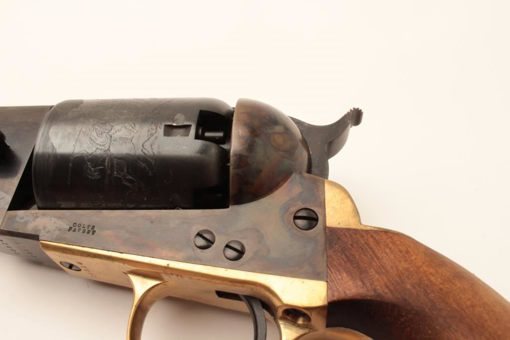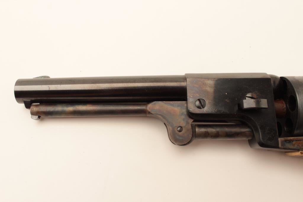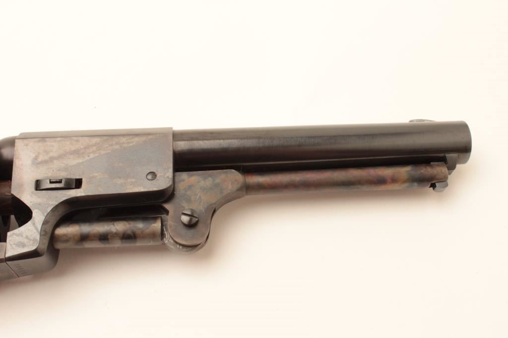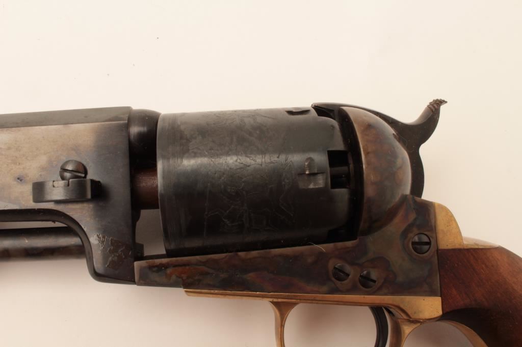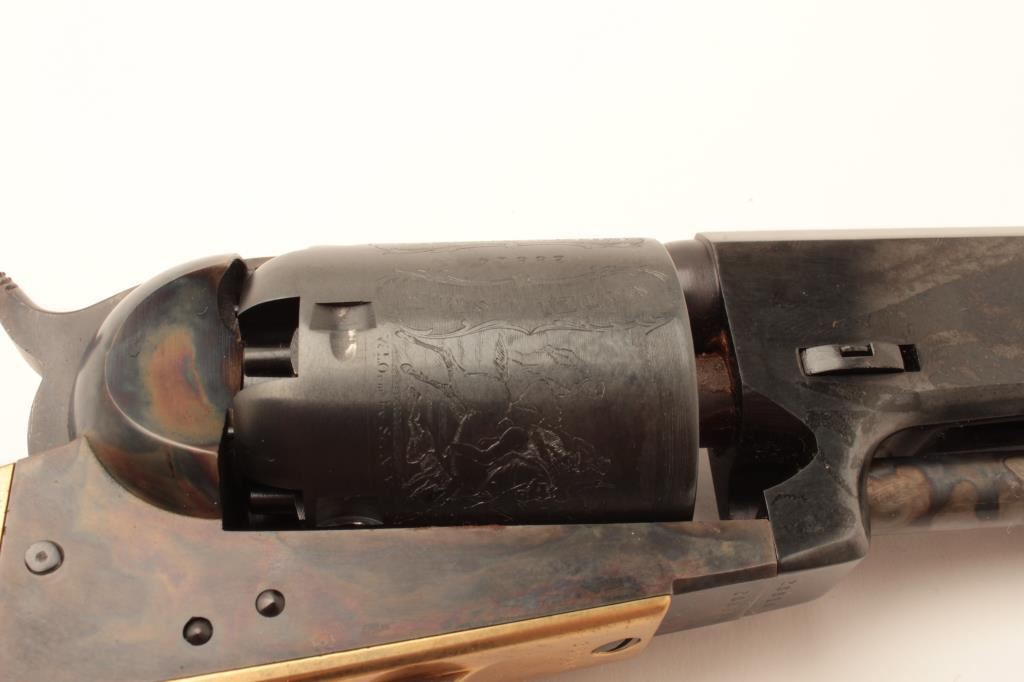 Colt New Blackpowder percussion 2nd Model Dragoon revolver, .44 caliber, 7.5” barrel, blued and case hardened finish, wood grips, S/N 28814; like new condition and contained in factory black cardboard box with end label numbered to this gun. (percussion). Est.: $500-$1,000.
