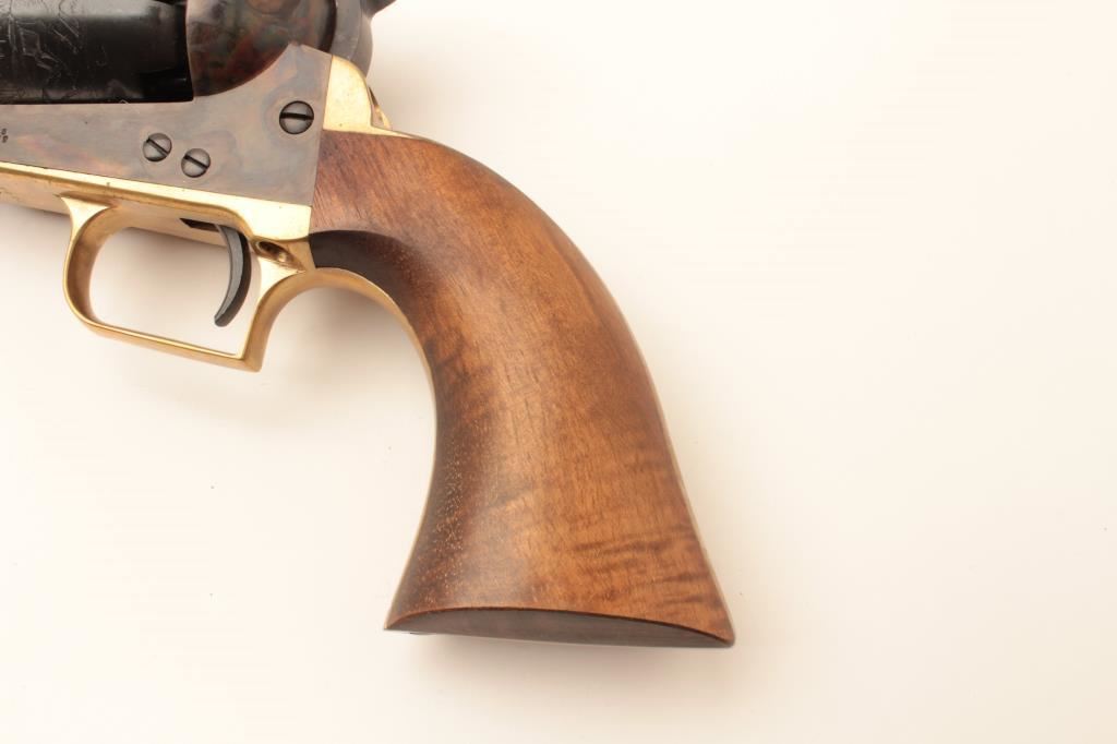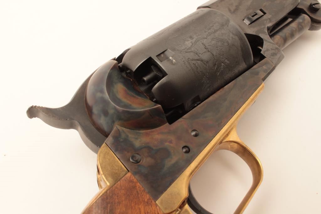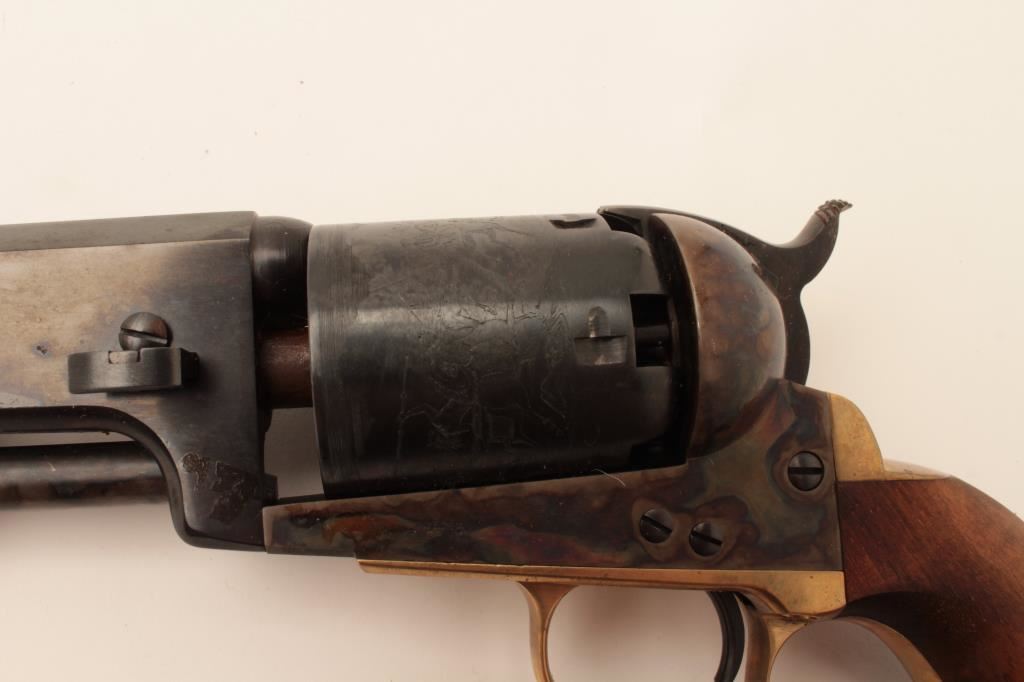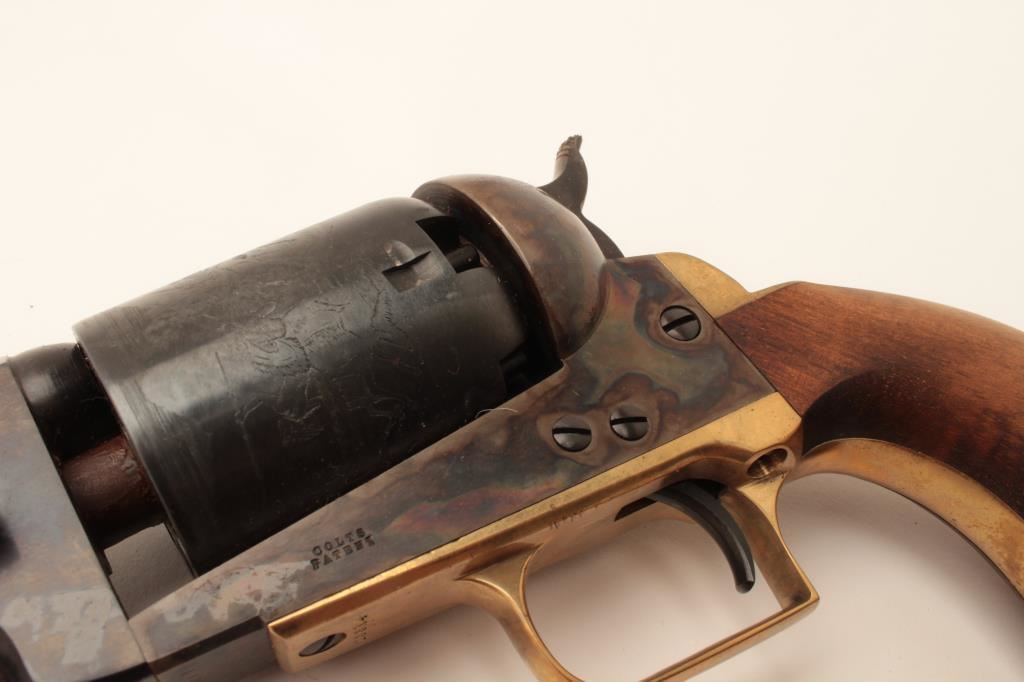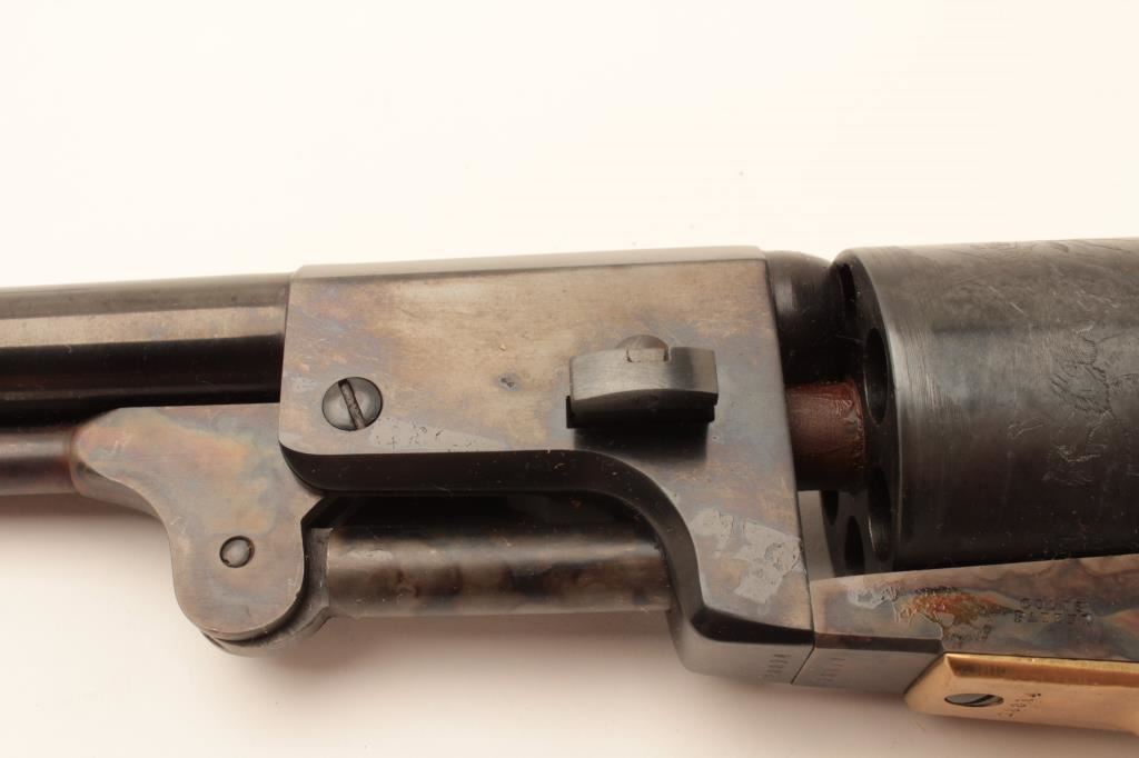Colt New Blackpowder percussion 2nd Model Dragoon revolver, .44 caliber, 7.5” barrel, blued and case hardened finish, wood grips, S/N 28814; like new condition and contained in factory black cardboard box with end label numbered to this gun. (percussion). Est.: $500-$1,000.
