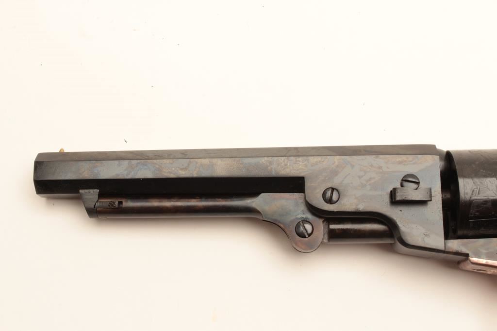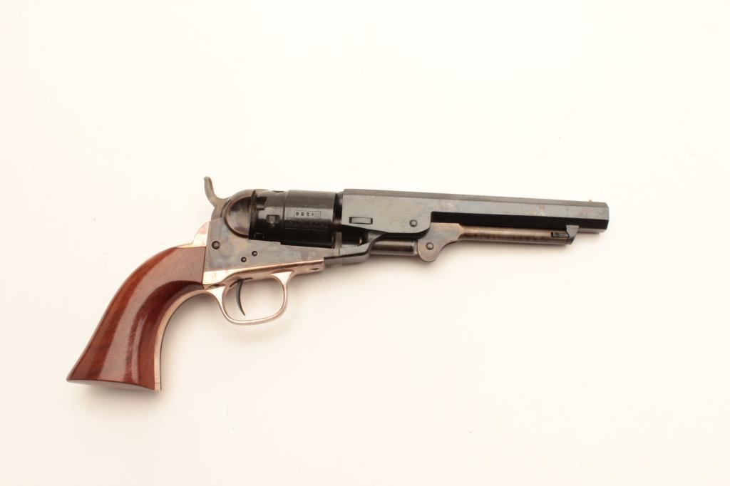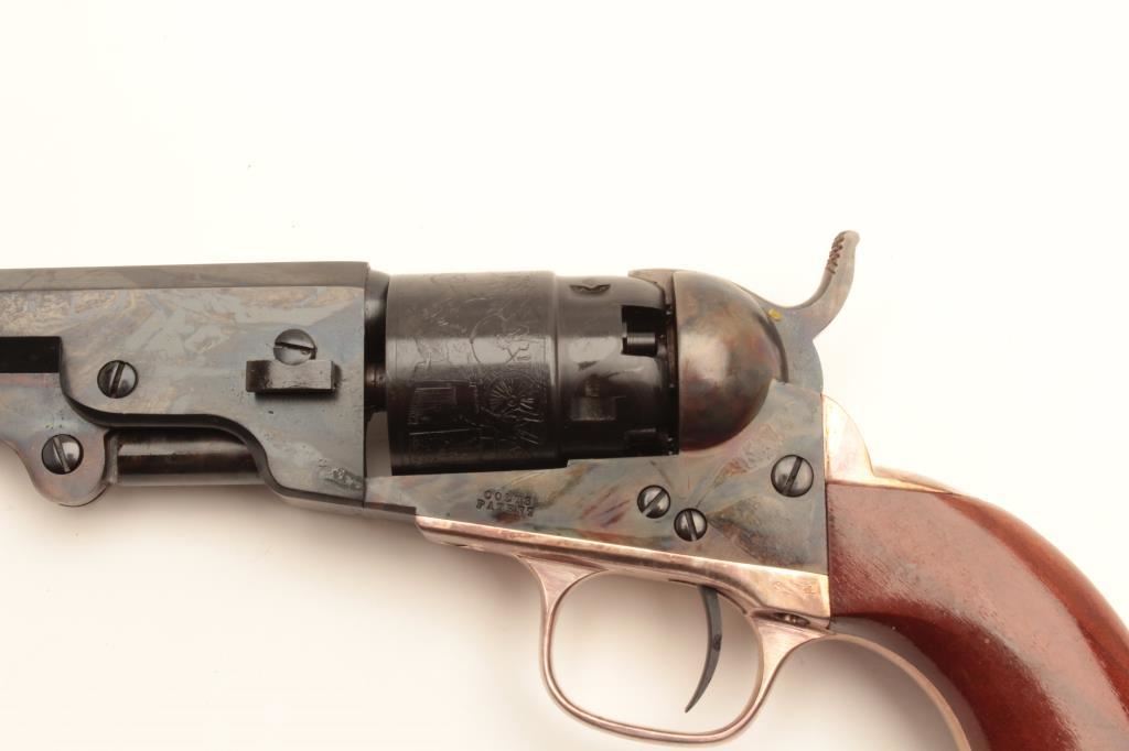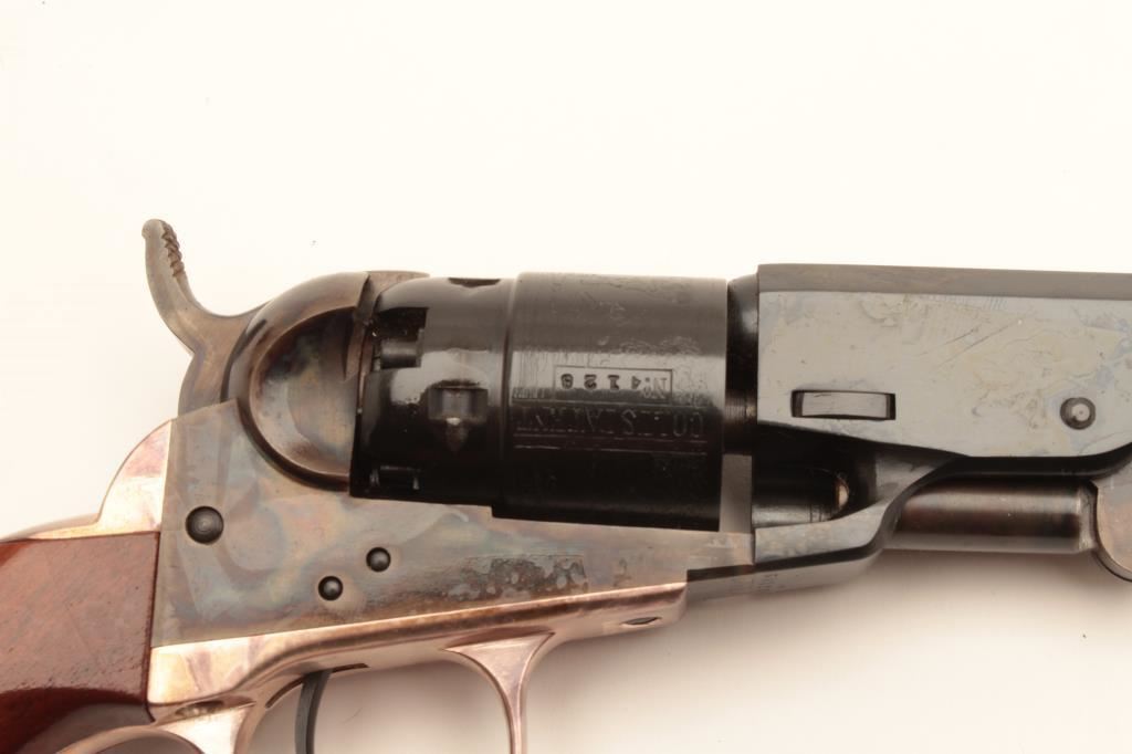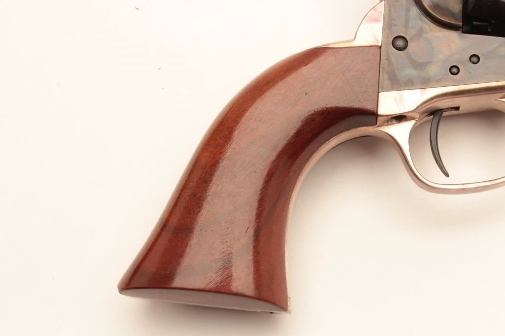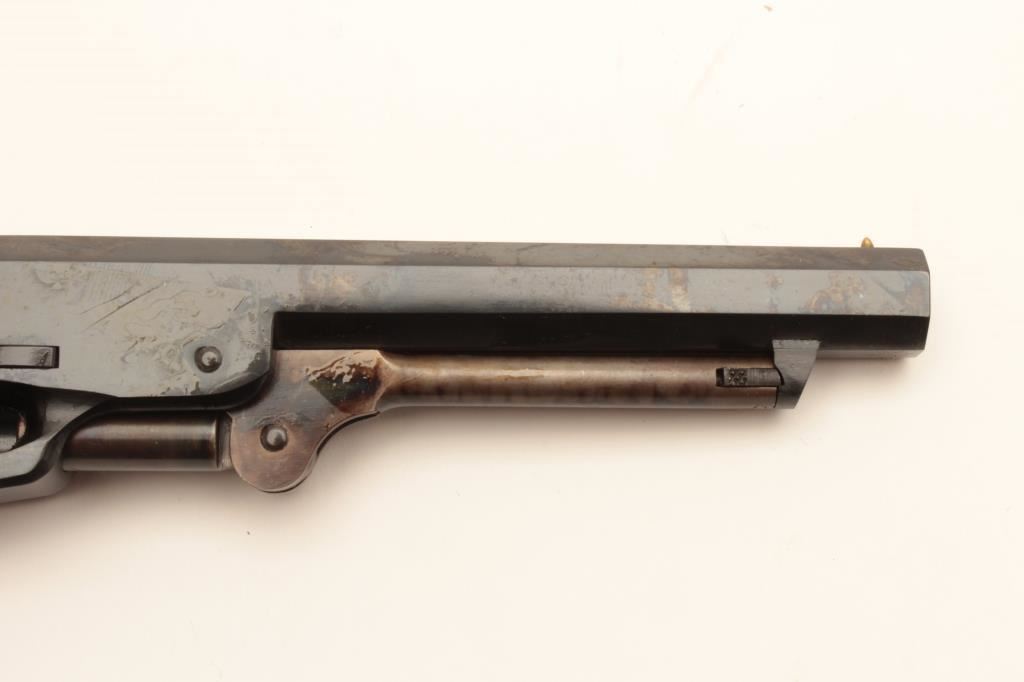 Colt New Blackpowder percussion Model 1862 pocket Navy revolver, .36 caliber, 5.5” barrel, blued and case hardened finish, wood grips, S/N 54128; like new condition and contained in a factory black cardboard box with end label numbered to this gun. (percussion). Est.: $300-$600.