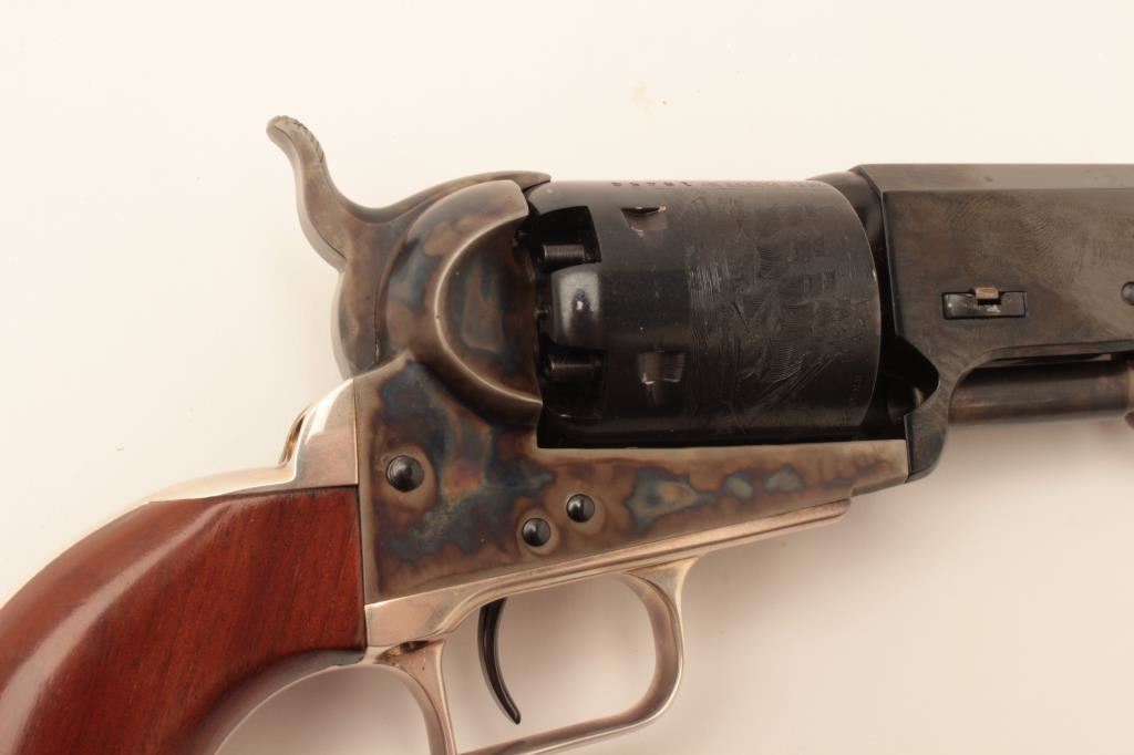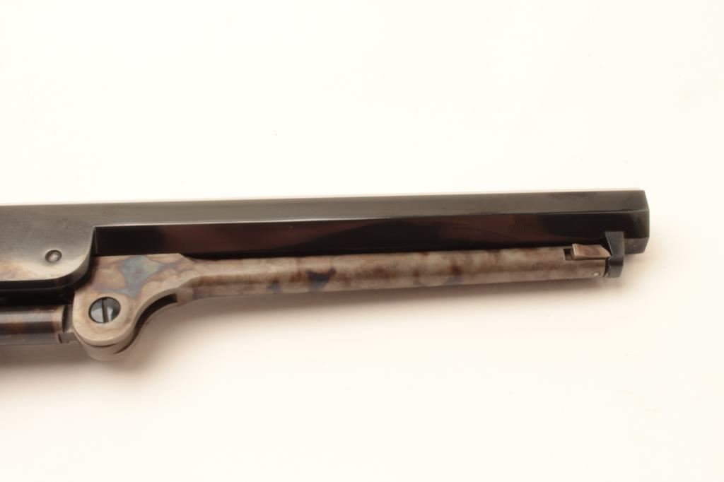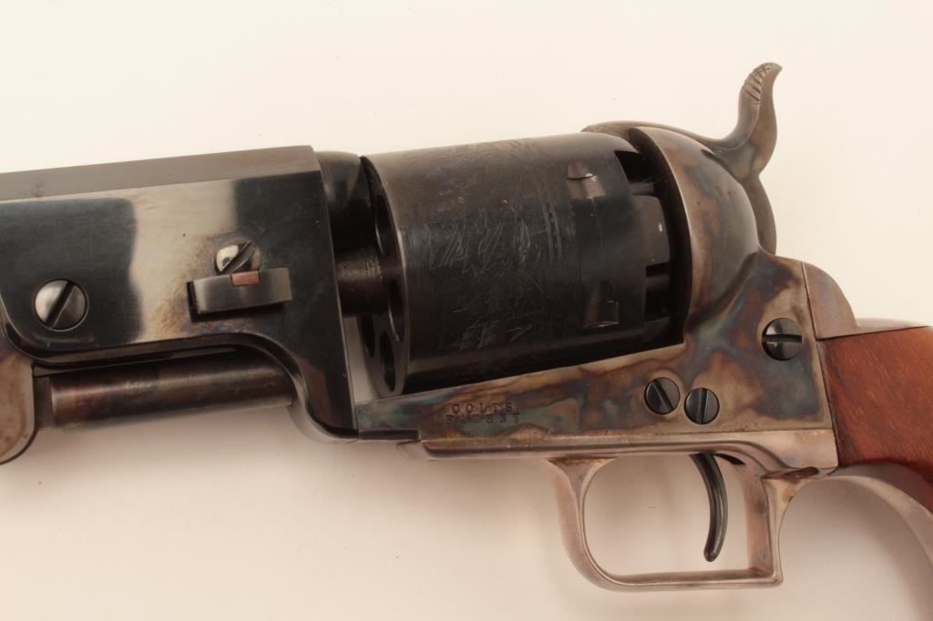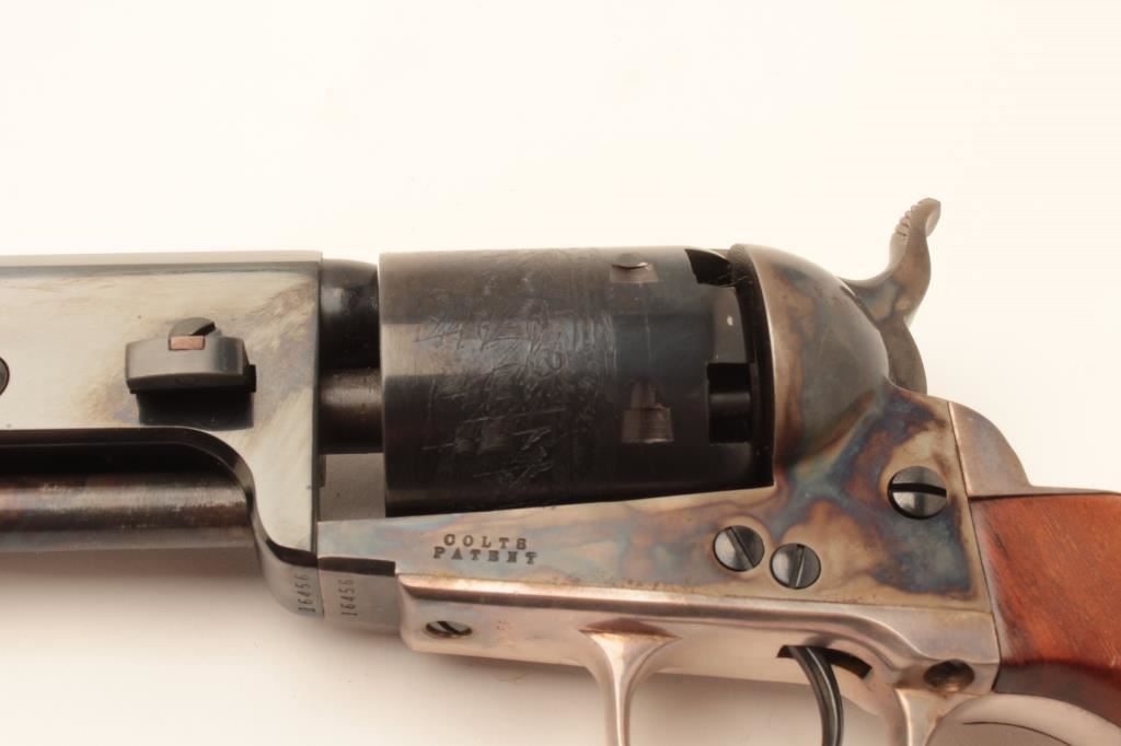 Colt New Blackpowder percussion Model 1851 Navy revolver, .36 caliber, 7.5” barrel, blued and case hardened finish, wood grips, S/N 16456; like new condition and contained in a wooden presentation case. (percussion). Est.: $350-$700.