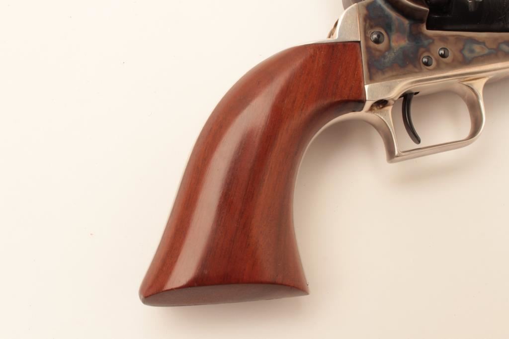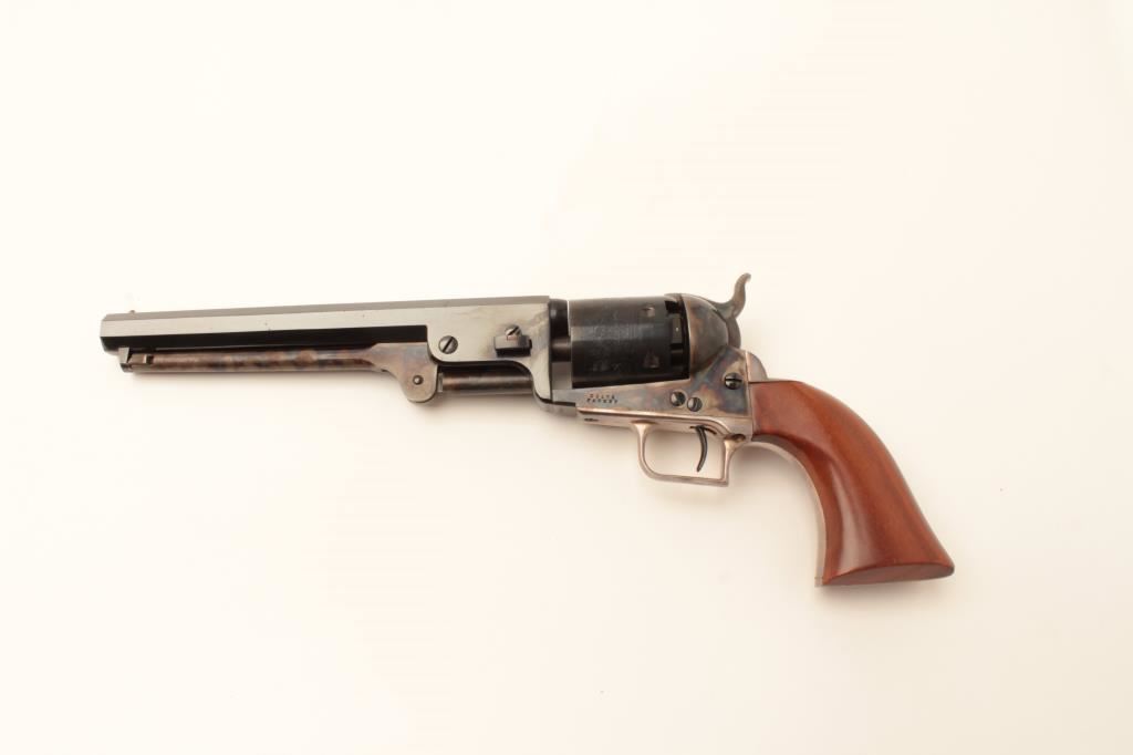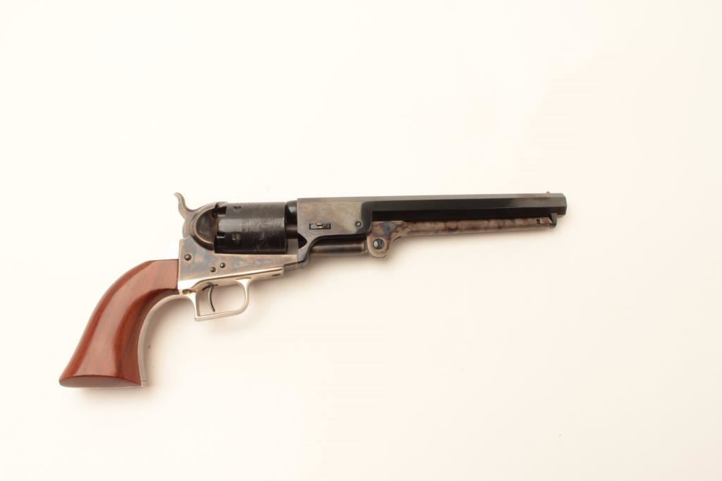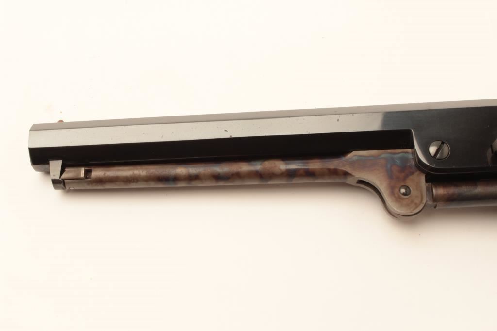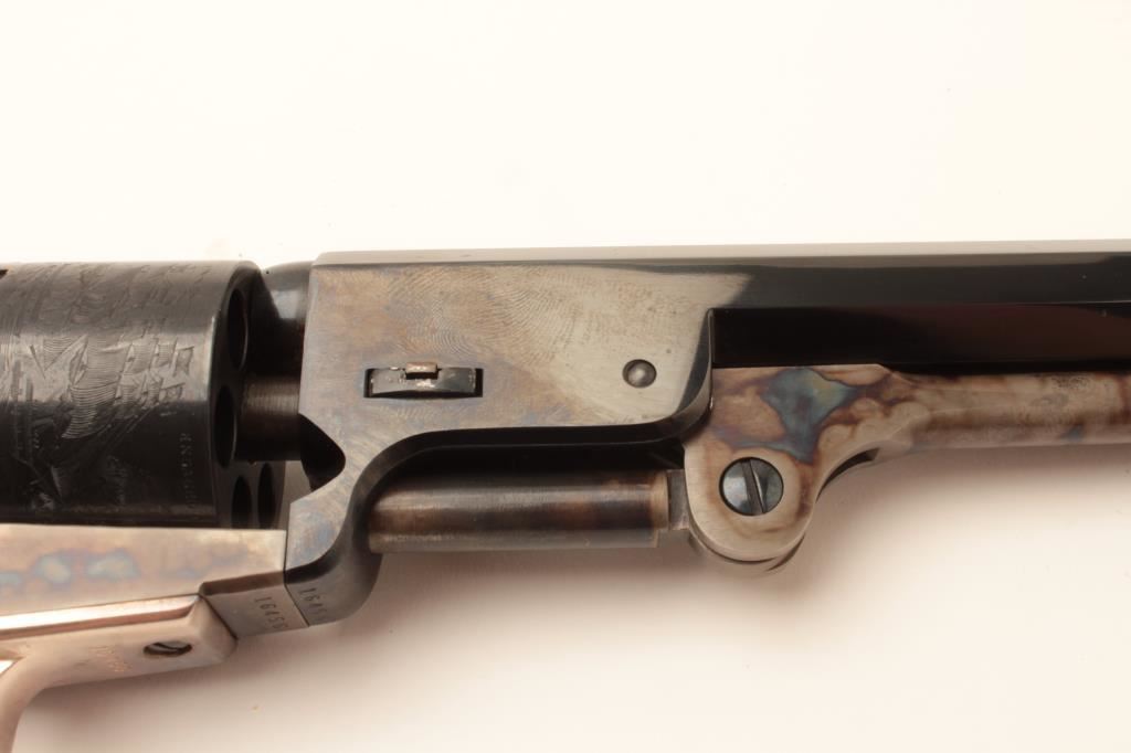 Colt New Blackpowder percussion Model 1851 Navy revolver, .36 caliber, 7.5” barrel, blued and case hardened finish, wood grips, S/N 16456; like new condition and contained in a wooden presentation case. (percussion). Est.: $350-$700.