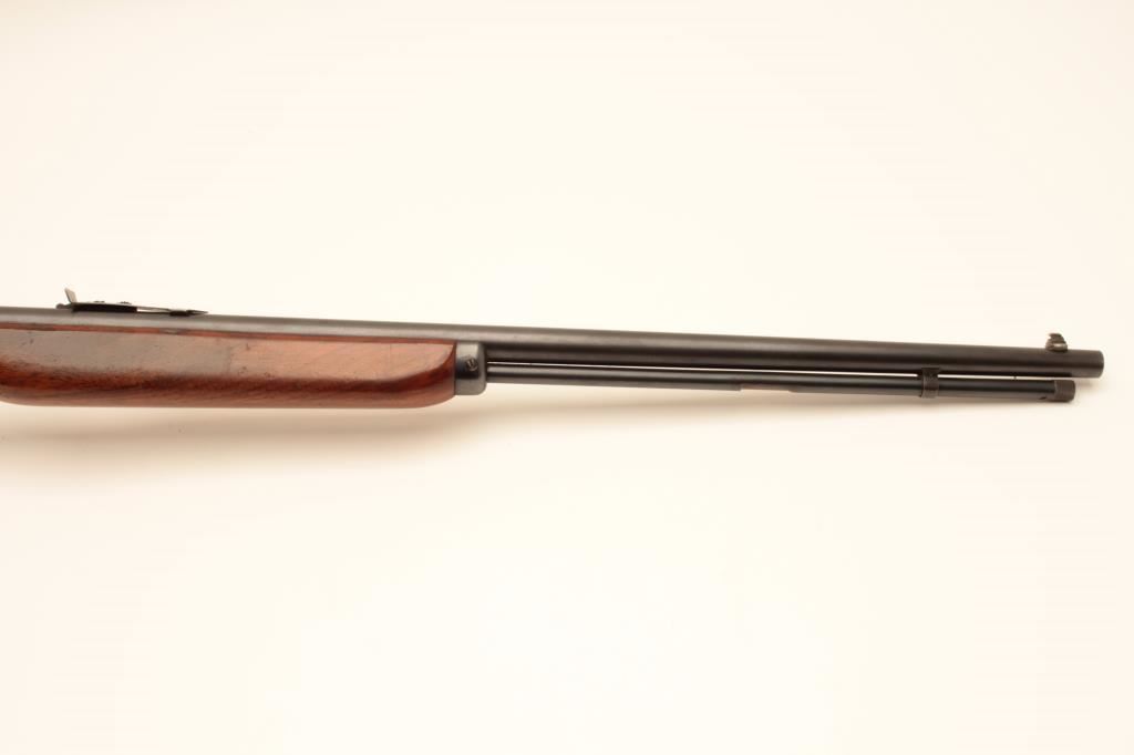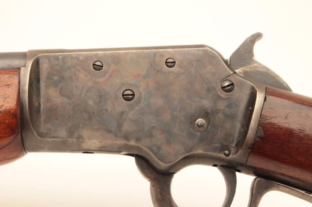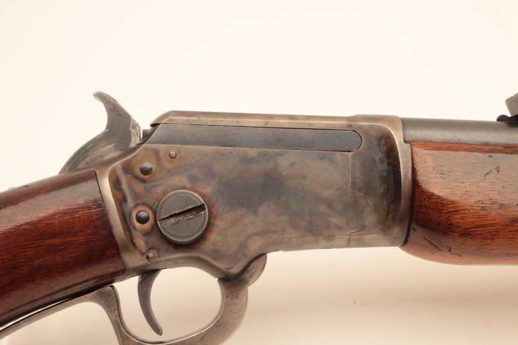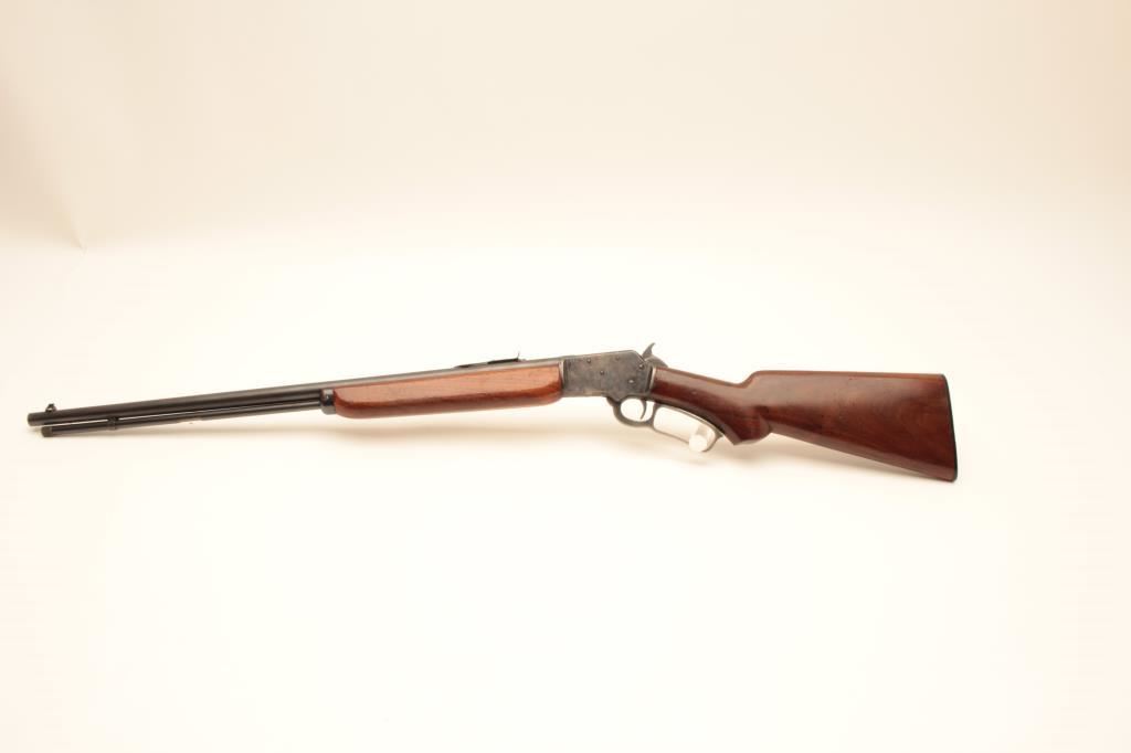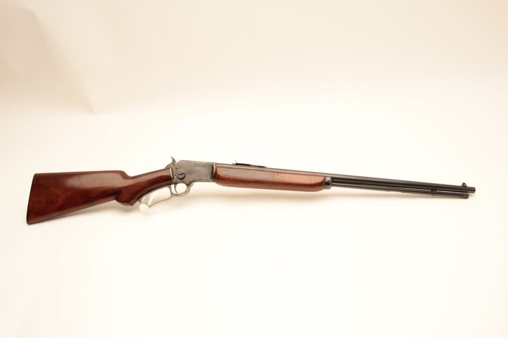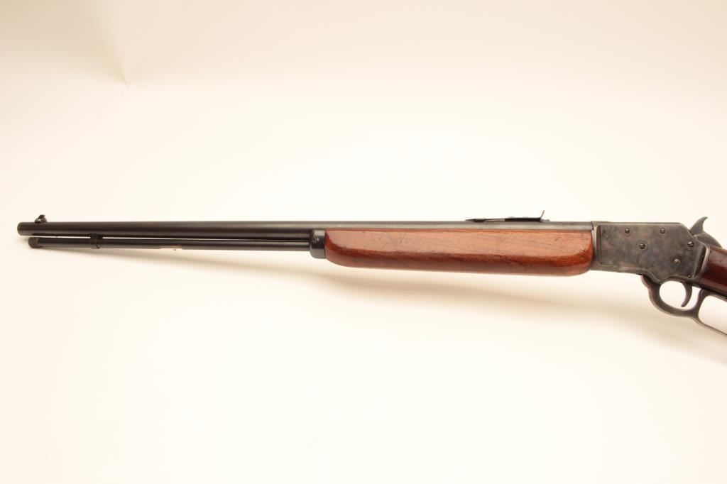 Marlin Model 39A lever action rifle, .22 short, long & LR caliber, 24” round barrel, blued and case hardened finish, wood stocks, S/N 2040; overall very good to near fine condition displaying majority of original blued finish to barrel and loading tube with majority of case colors remaining on receiver; very good bore, crisp action, sharp markings and very good wood stocks. (C&R/PPT). Est.: $600-$1,200.