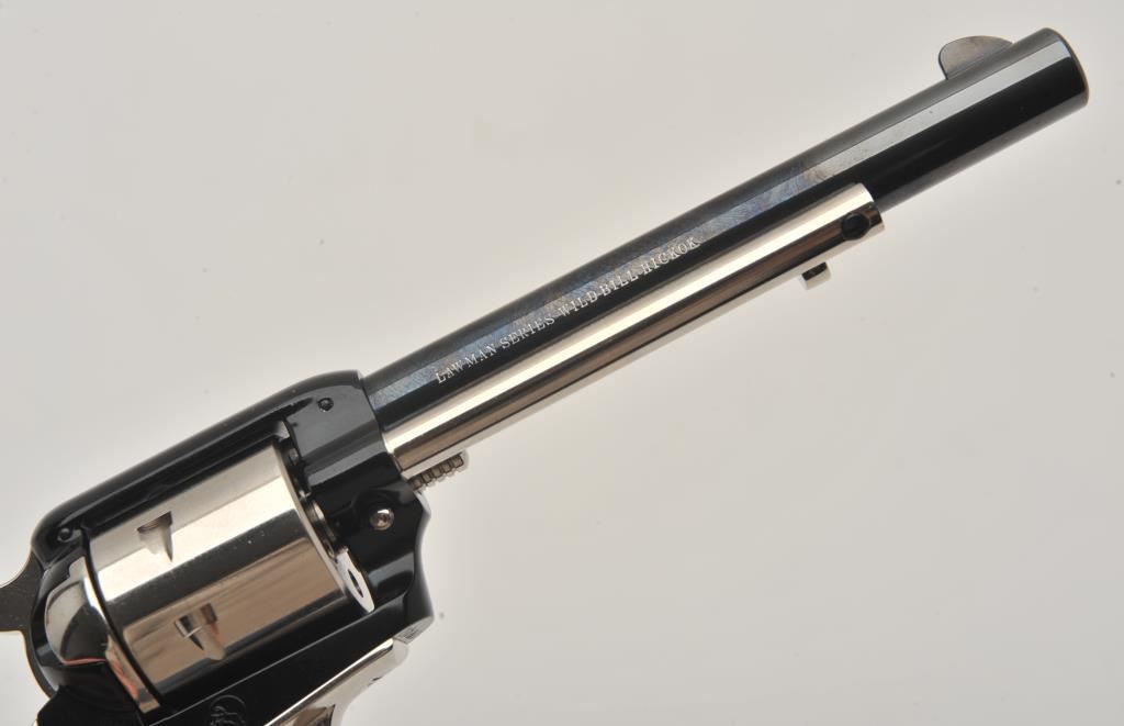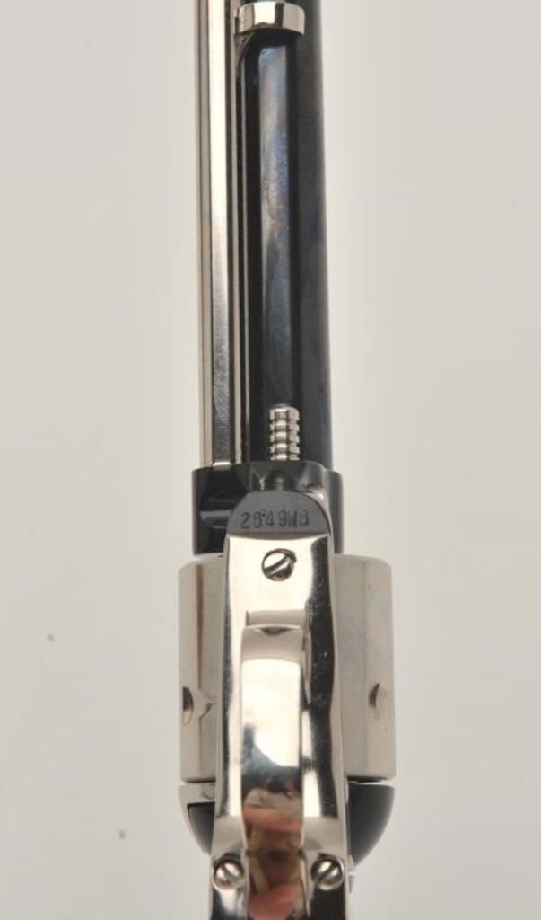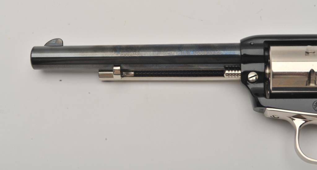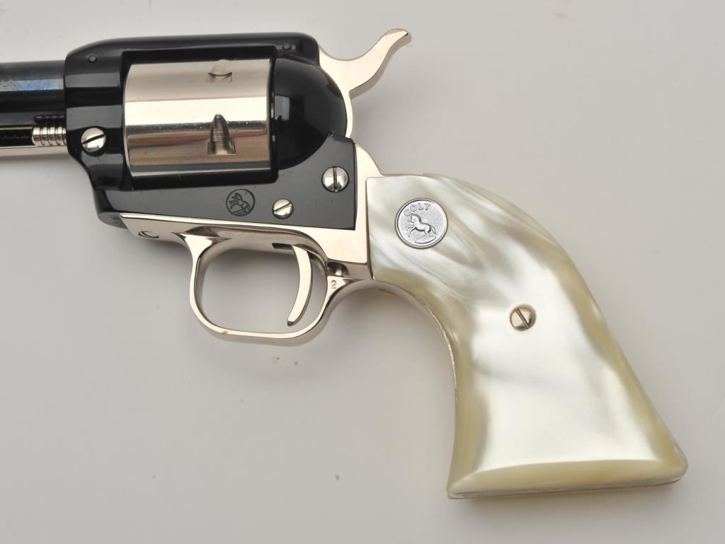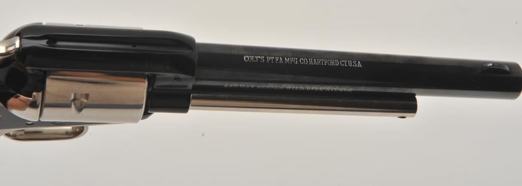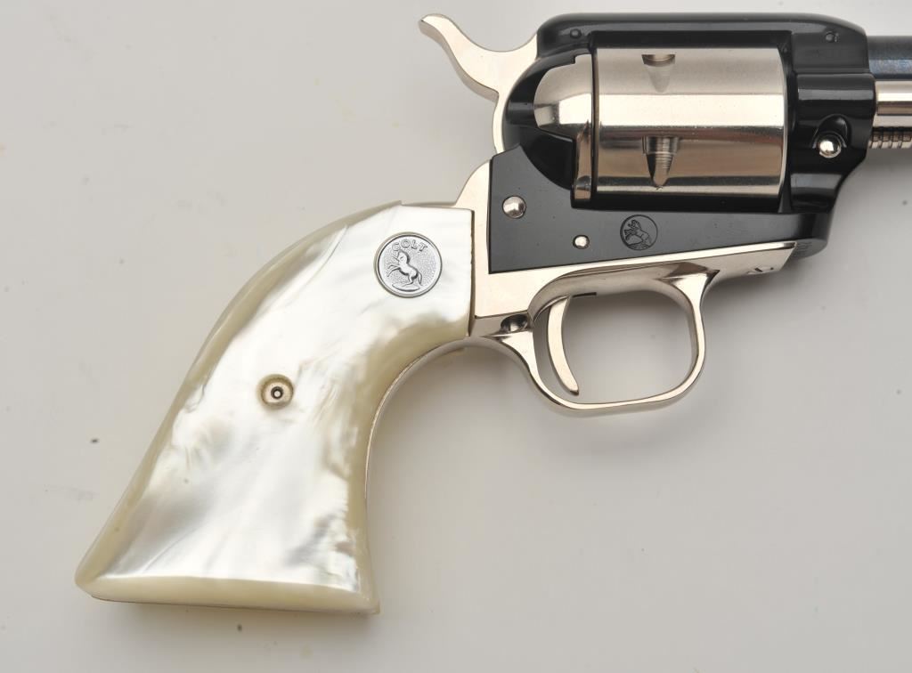 Colt Single Action Frontier Scout Lawman Series Wild Bill Hickok revolver, .22LR caliber, 6” barrel, two tone finish (blued and nickel), simulated pearl medallion grips, S/N 2649WB; like new condition. (Modern/PPT). Est.: $300-$600.