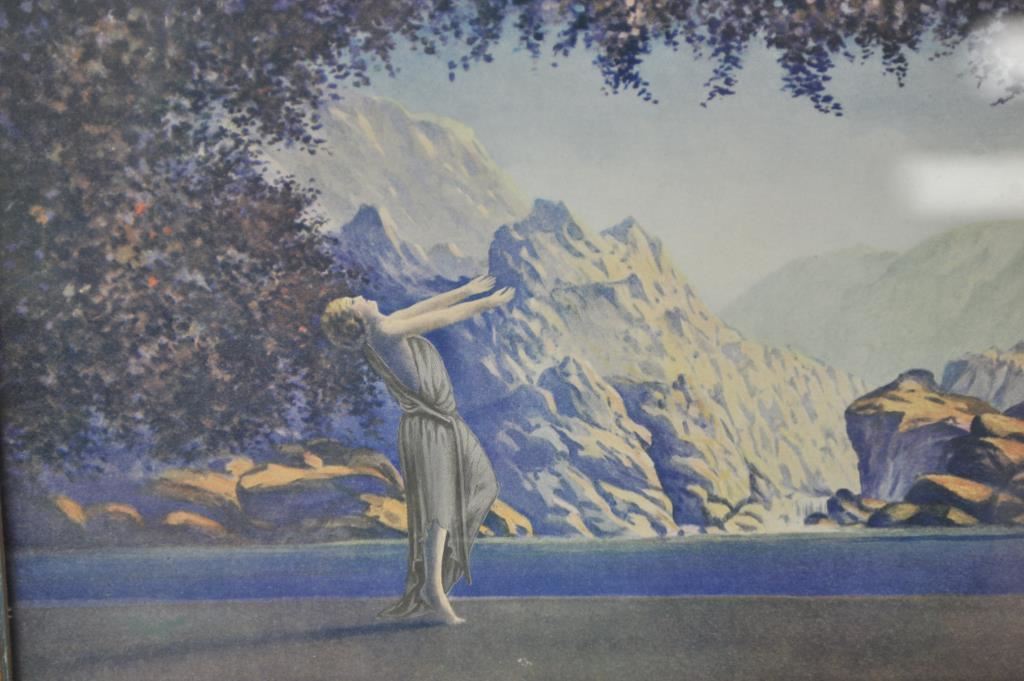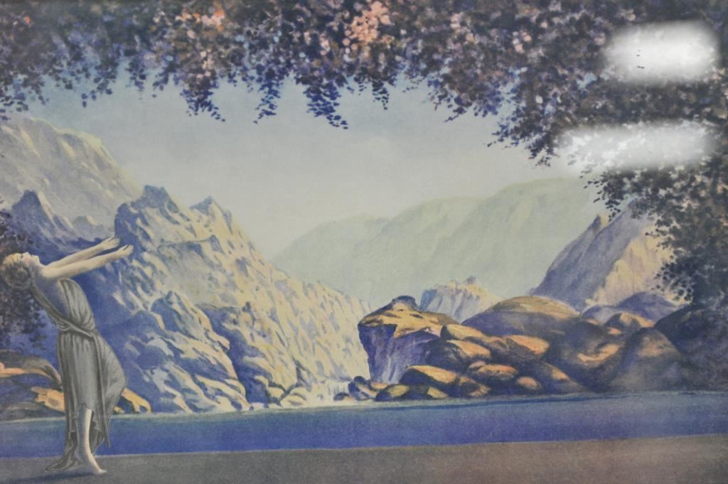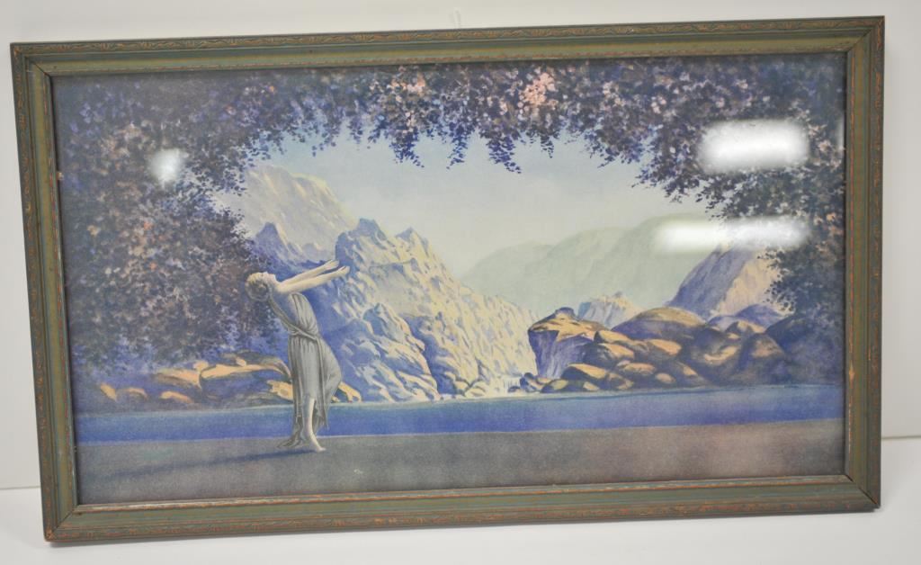 Vintage 1920-30s lithograph measuring 9 ½” x 17 ½”. Period frame. Good condition. Era of Maxfield Parish. Est.: $100-$200