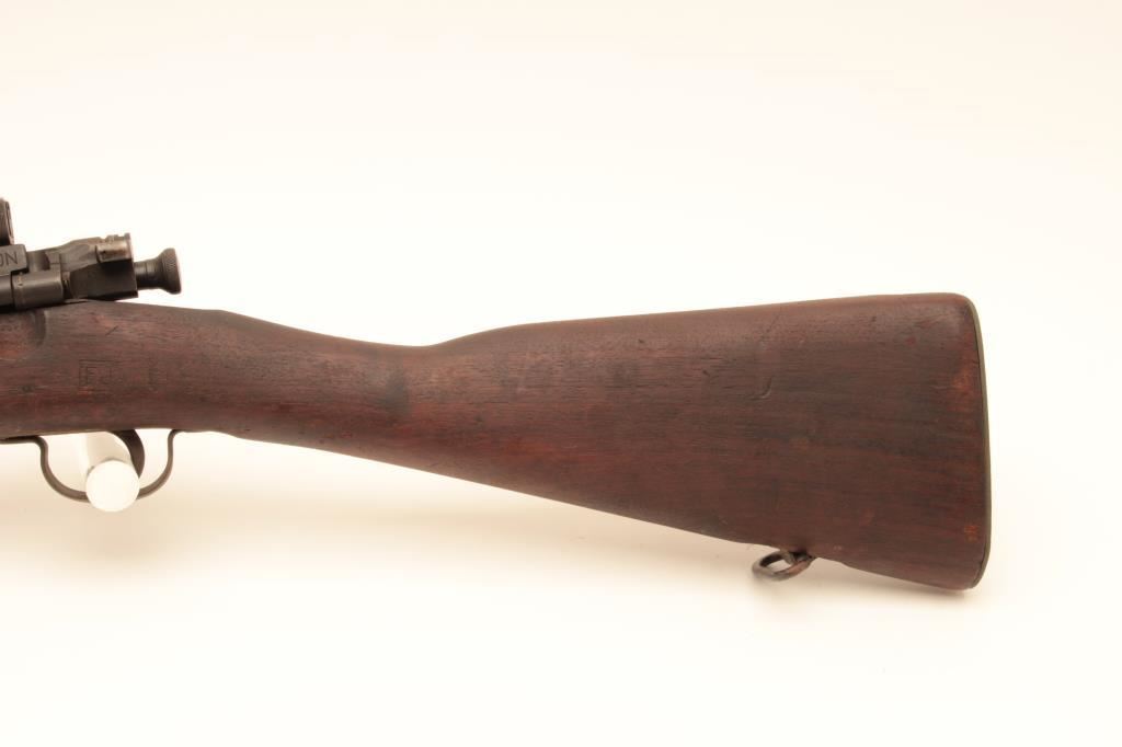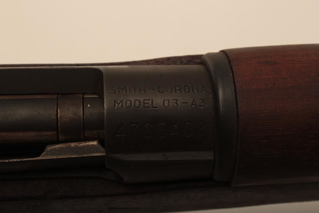 U.S. Smith Corona Model 03-A3 bolt action rifle, .30-06 caliber, 24.5” S.C. barrel dated 8-43”, military finish, wood stock, S/N 4765408; overall good un-cleaned condition with a good bore, crisp action, good markings and good wood stock with circle P proof and EJA inspector’s cartouche. (C&R/PPT). Est.: $300-$600.