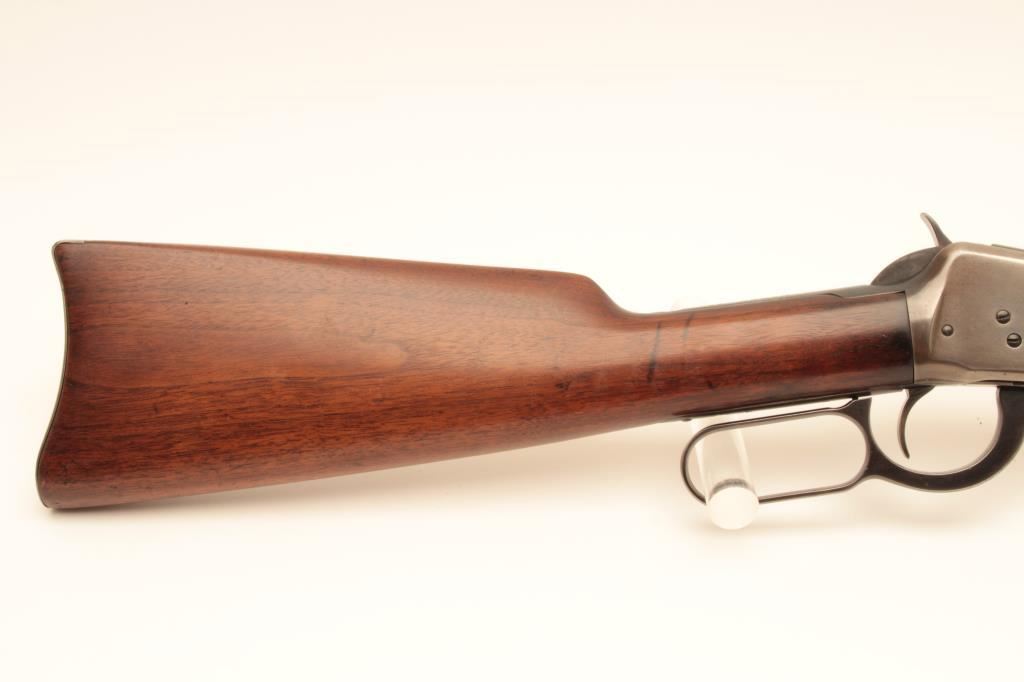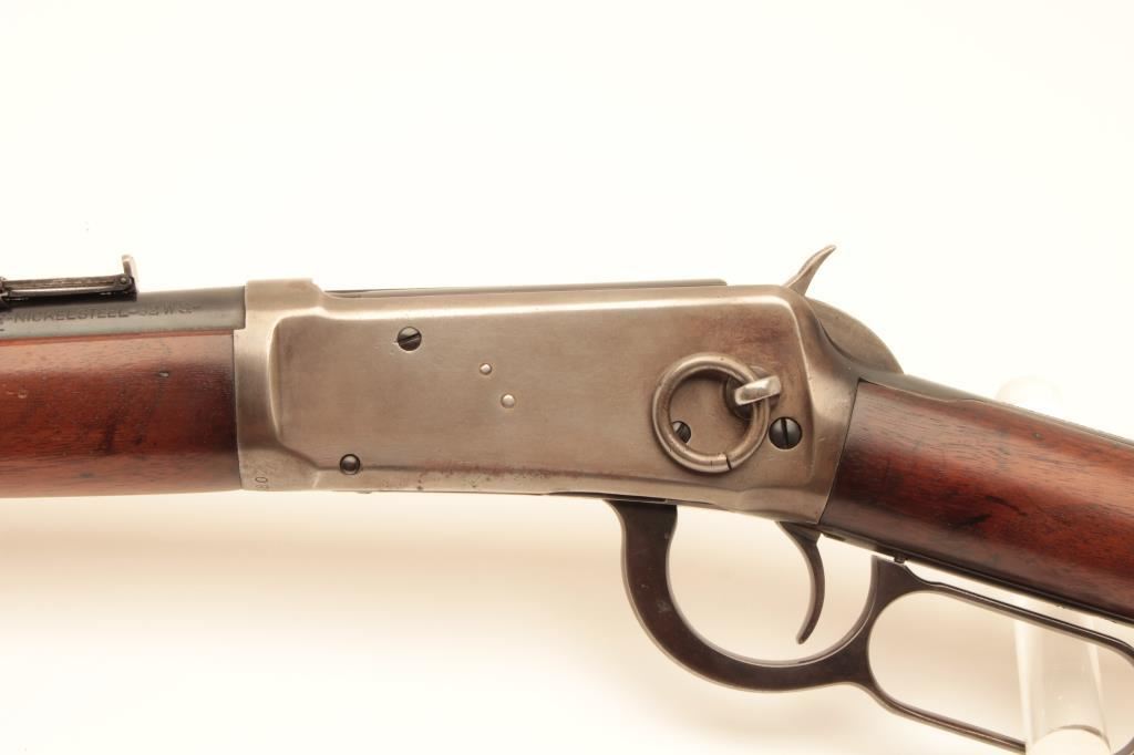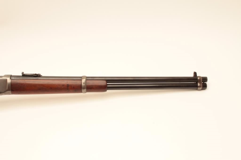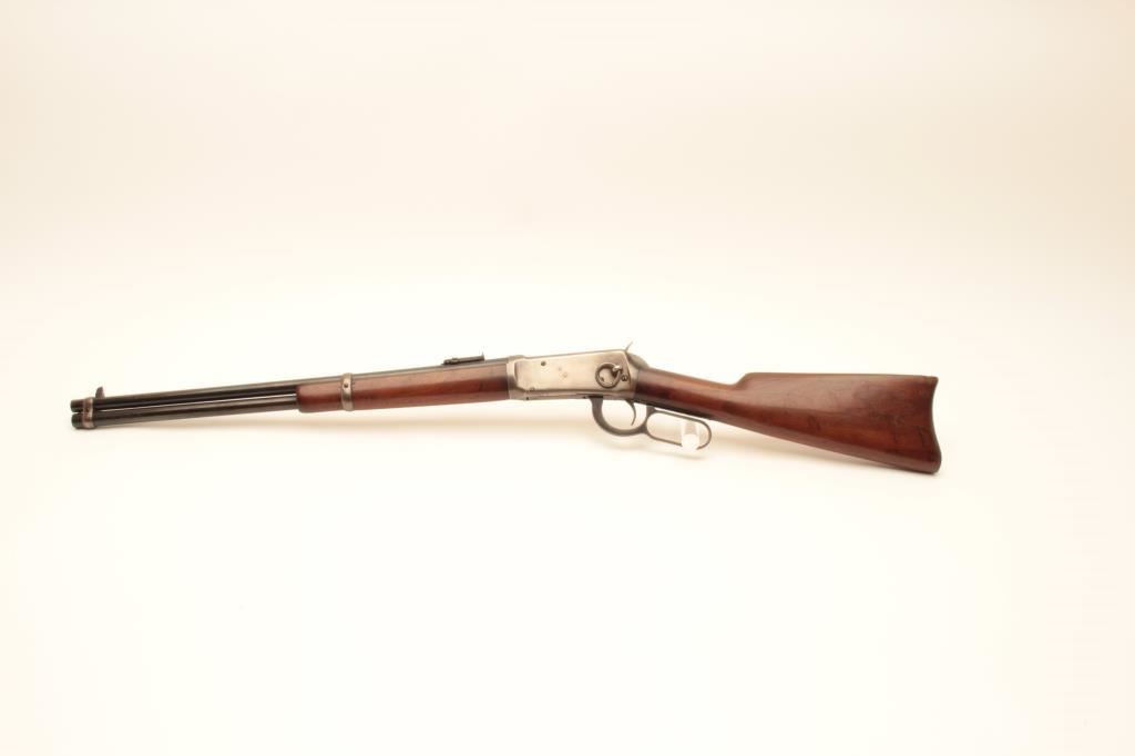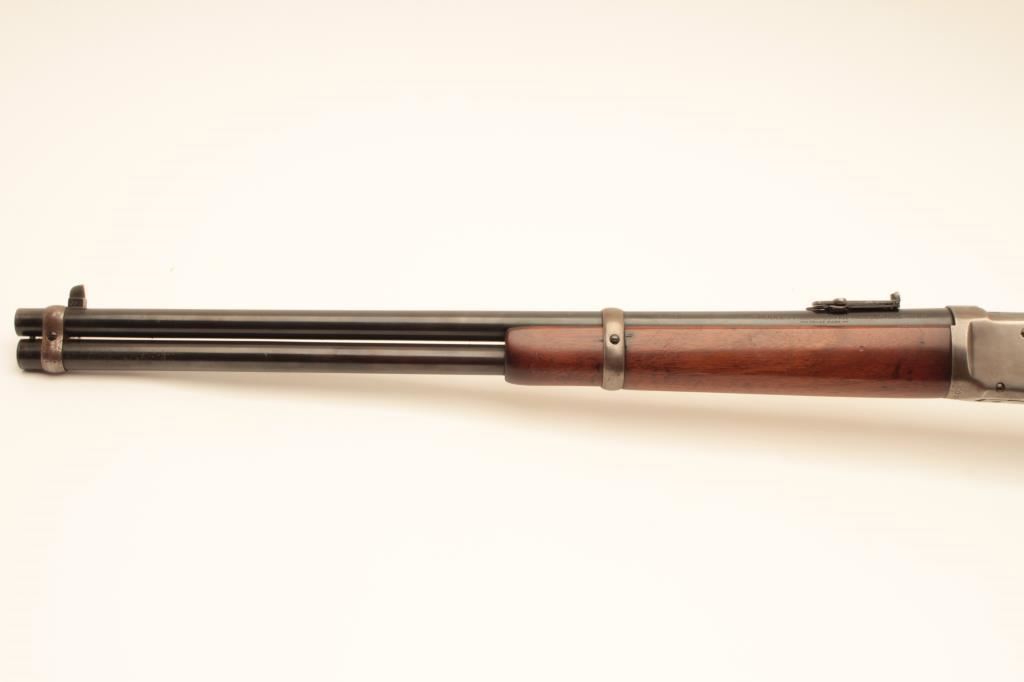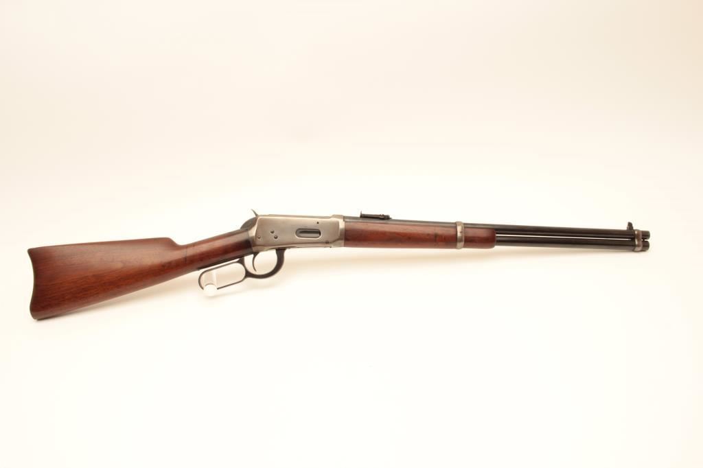 Winchester Model 94 lever action SRC., .32 W.S. caliber, 20” barrel, blued finish, wood stocks, S/N 990080; overall good to very good condition with majority of blued finish on barrel and loading tube, grey patina to receiver, fair bore, crisp action, sharp markings and good to very good wood. (C&R/PPT). Est.: $500-$1,000.