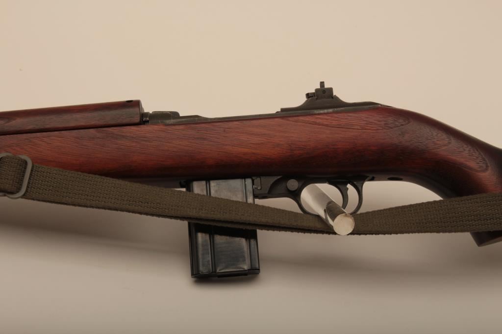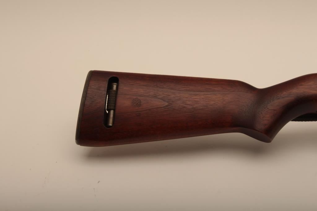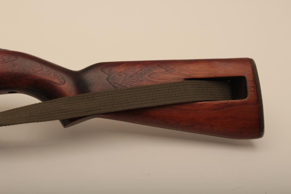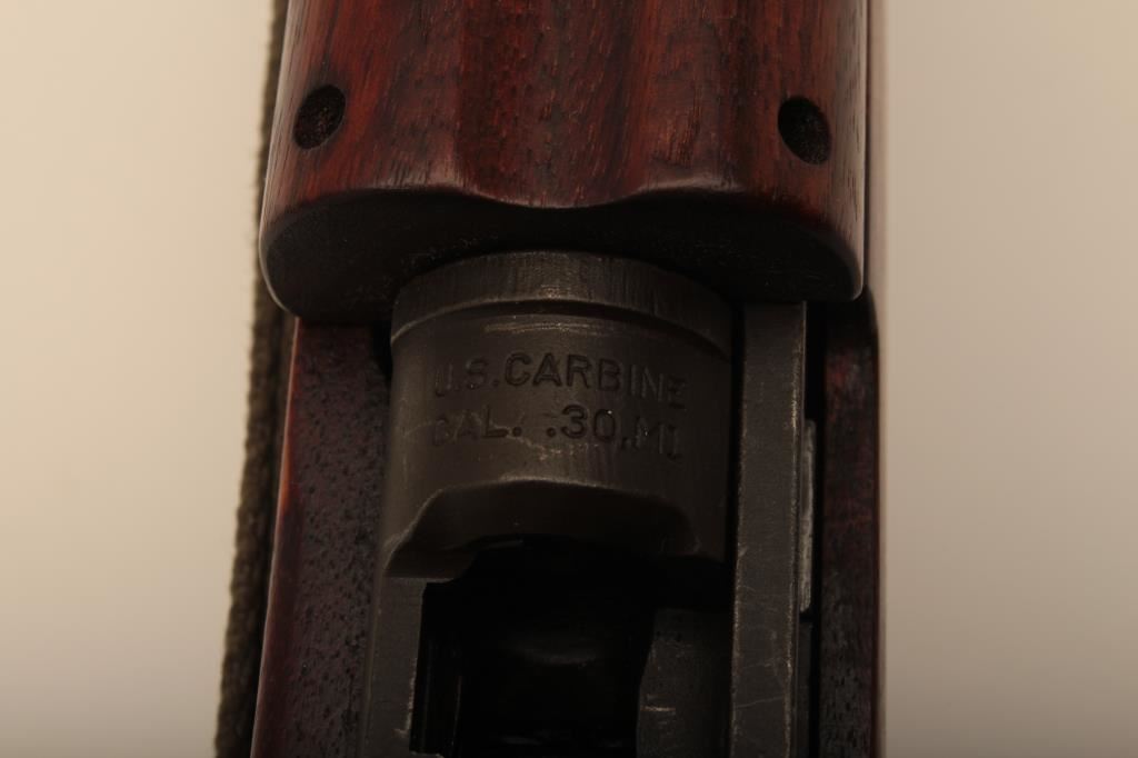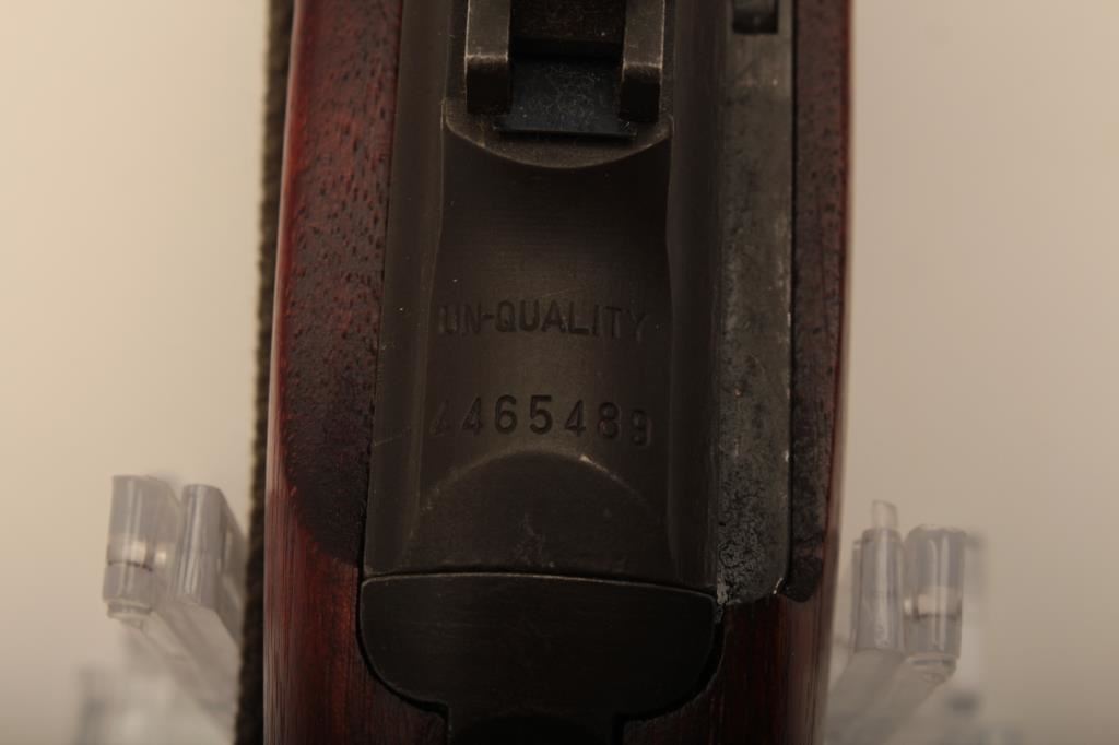 A quality Hardware M1 carbine with rare Un-Quality marked receiver, S/N 4465489. The receiver has the type 1 rear sight and does not show any stake marks. The Underwood barrel in .30 caliber carbine is dated 3-44 and has an excellent bore. All of the visible parts are correct for Quality Hardware including the operating slide and trigger group parts. The bolt is marked “EMQ”. The stock is a Type 2, high wood stock marked “Q-RMC” in the well with the proper cartouche near the oiler cutout and is in excellent condition. An olive drab crescent tip sling is included. The buttplate is correct but lacking finish. The Parkerizing is a dark charcoal color throughout and the overall condition of the carbine is excellent showing only light wear. Among best known specimens. An original fifteen round magazine marked “QU” is included (Not available to California residents). (C&R) Est.: $5,000-$10,000