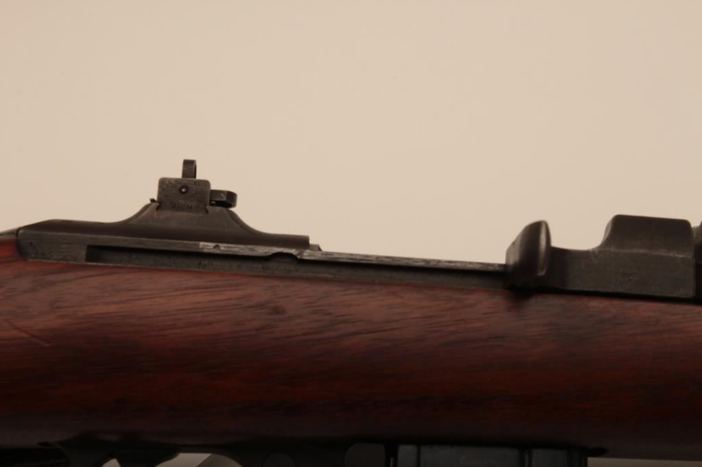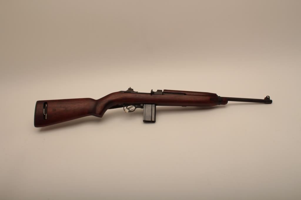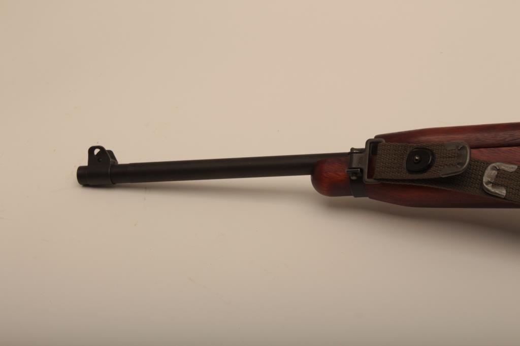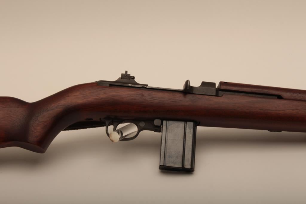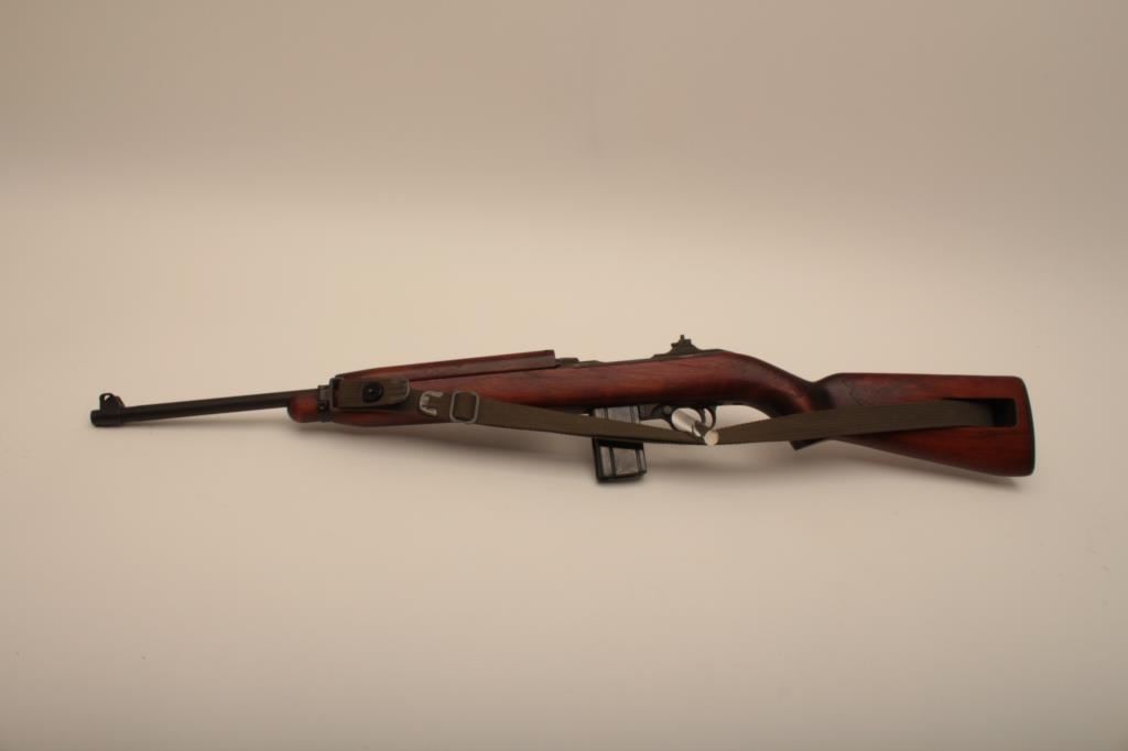 A quality Hardware M1 carbine with rare Un-Quality marked receiver, S/N 4465489. The receiver has the type 1 rear sight and does not show any stake marks. The Underwood barrel in .30 caliber carbine is dated 3-44 and has an excellent bore. All of the visible parts are correct for Quality Hardware including the operating slide and trigger group parts. The bolt is marked “EMQ”. The stock is a Type 2, high wood stock marked “Q-RMC” in the well with the proper cartouche near the oiler cutout and is in excellent condition. An olive drab crescent tip sling is included. The buttplate is correct but lacking finish. The Parkerizing is a dark charcoal color throughout and the overall condition of the carbine is excellent showing only light wear. Among best known specimens. An original fifteen round magazine marked “QU” is included (Not available to California residents). (C&R) Est.: $5,000-$10,000