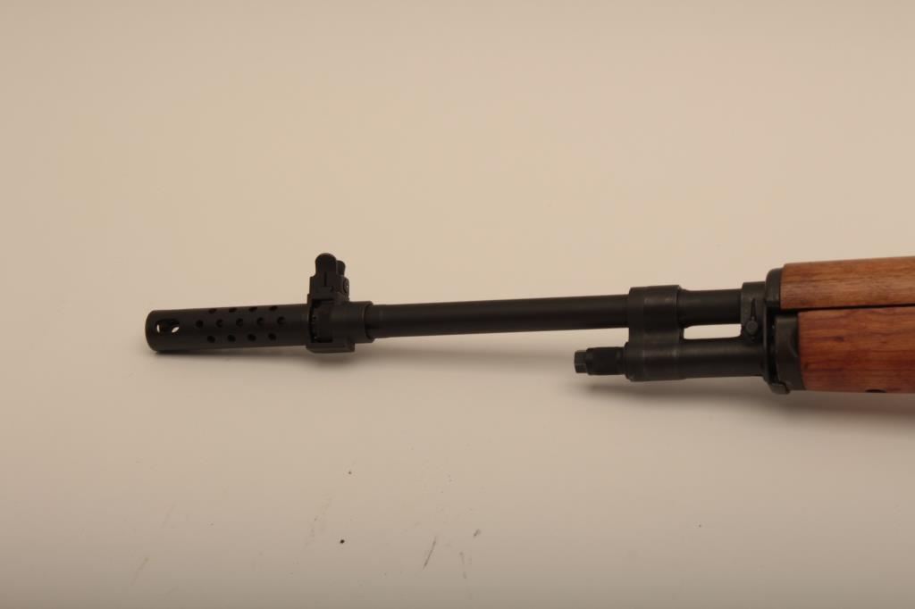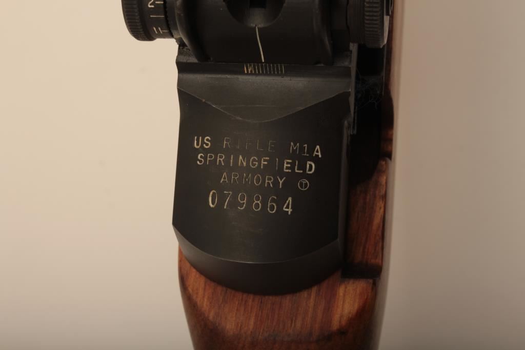 Custom armor built M1A in .308 on Springfield Armory action, S/N 079864. Winchester barrel aand parts on Winchester stock and handguard. Completely legal semi-auto using high quality Winchester parts. Very good plus overall condition with wood showing cleaning and most cartouche. No mag. The barrel dated 1961. Bright bore. (C&R) Est.: $800-$1600
