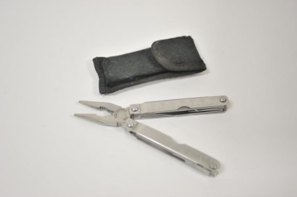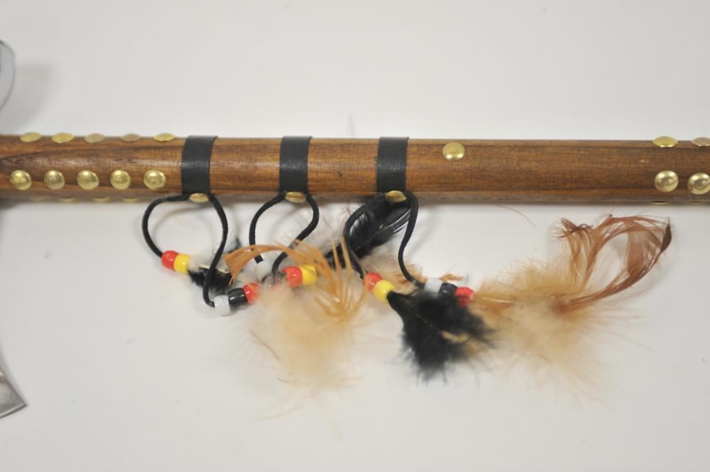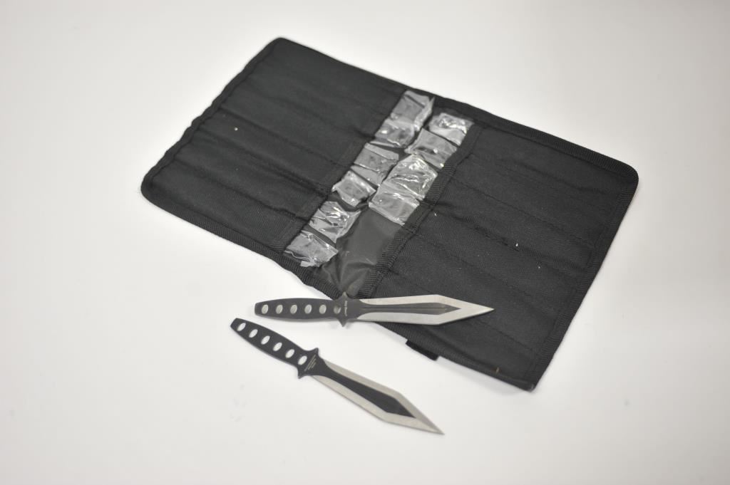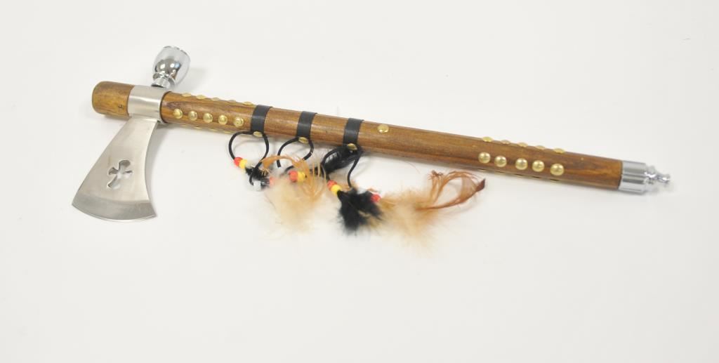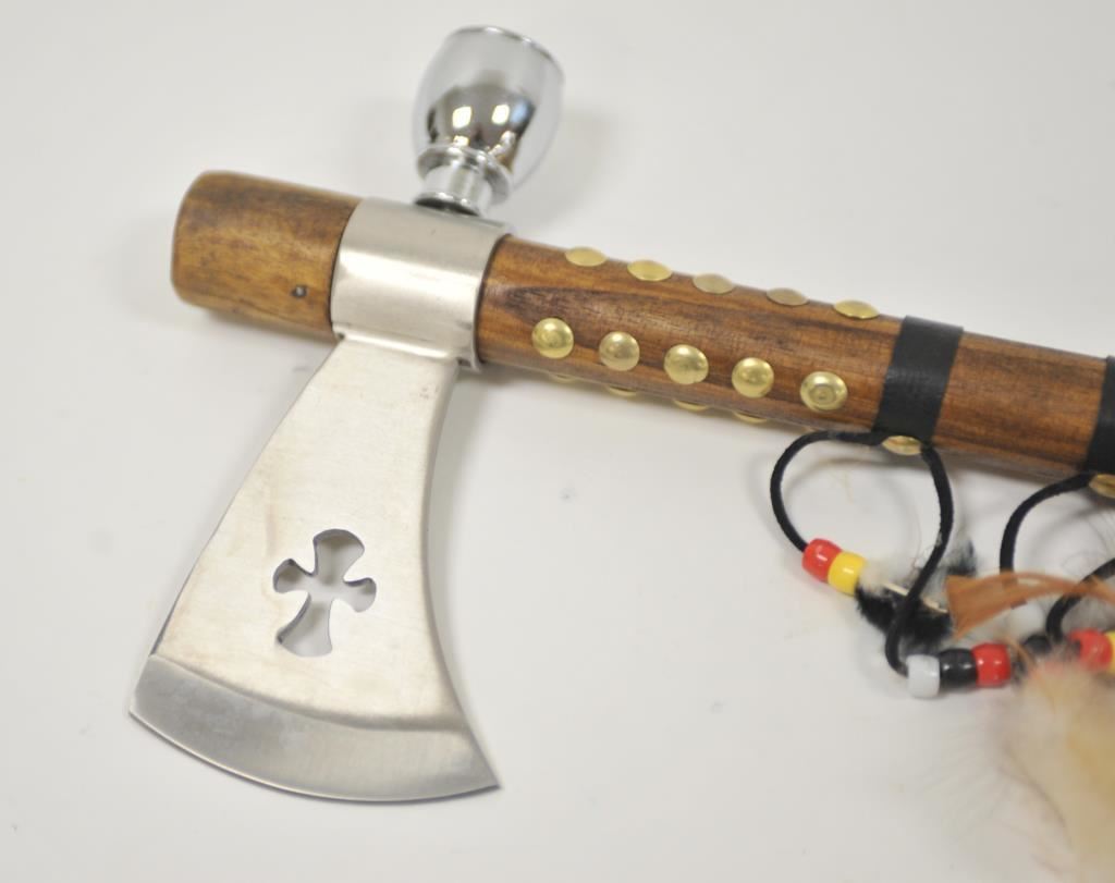 Peacepipe tomahawk, 12 throwing knives, straight razor, and stainless steel multi-tool. Est.: $100-$200