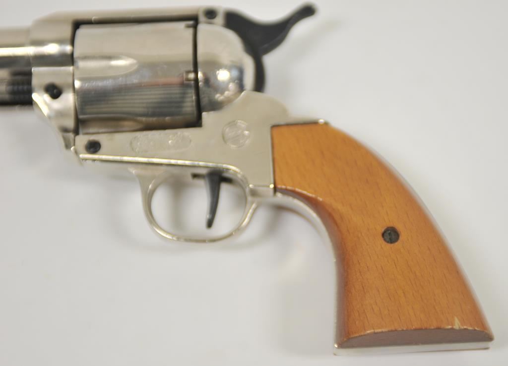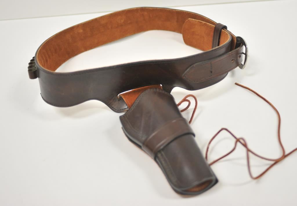 ME Ranger .380 blank firing Single action revolver made in Italy with size 45 waist western belt rig by Kirkpatrick. Both excellent condition. Est.: $100-$200