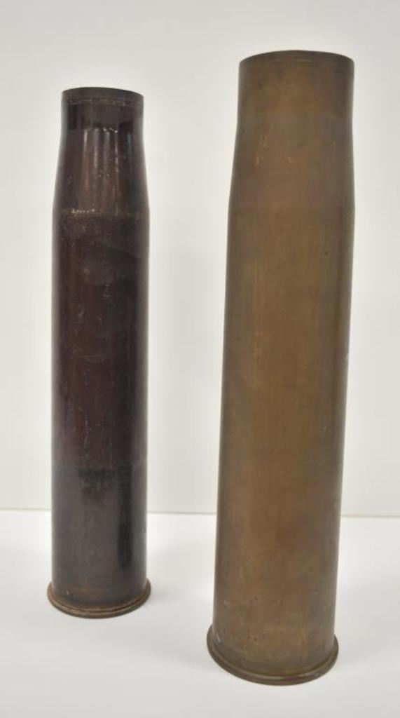 Lot of 2 large artillery shells, 105mm and 95mm; great decorators. Est.: $50-$100.
