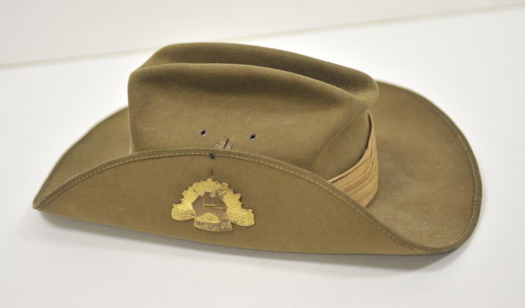 Austrailian Cavalry hat - 1968, size 7 1/8, made by Fayrefield, Melbourne. Est. $50-100