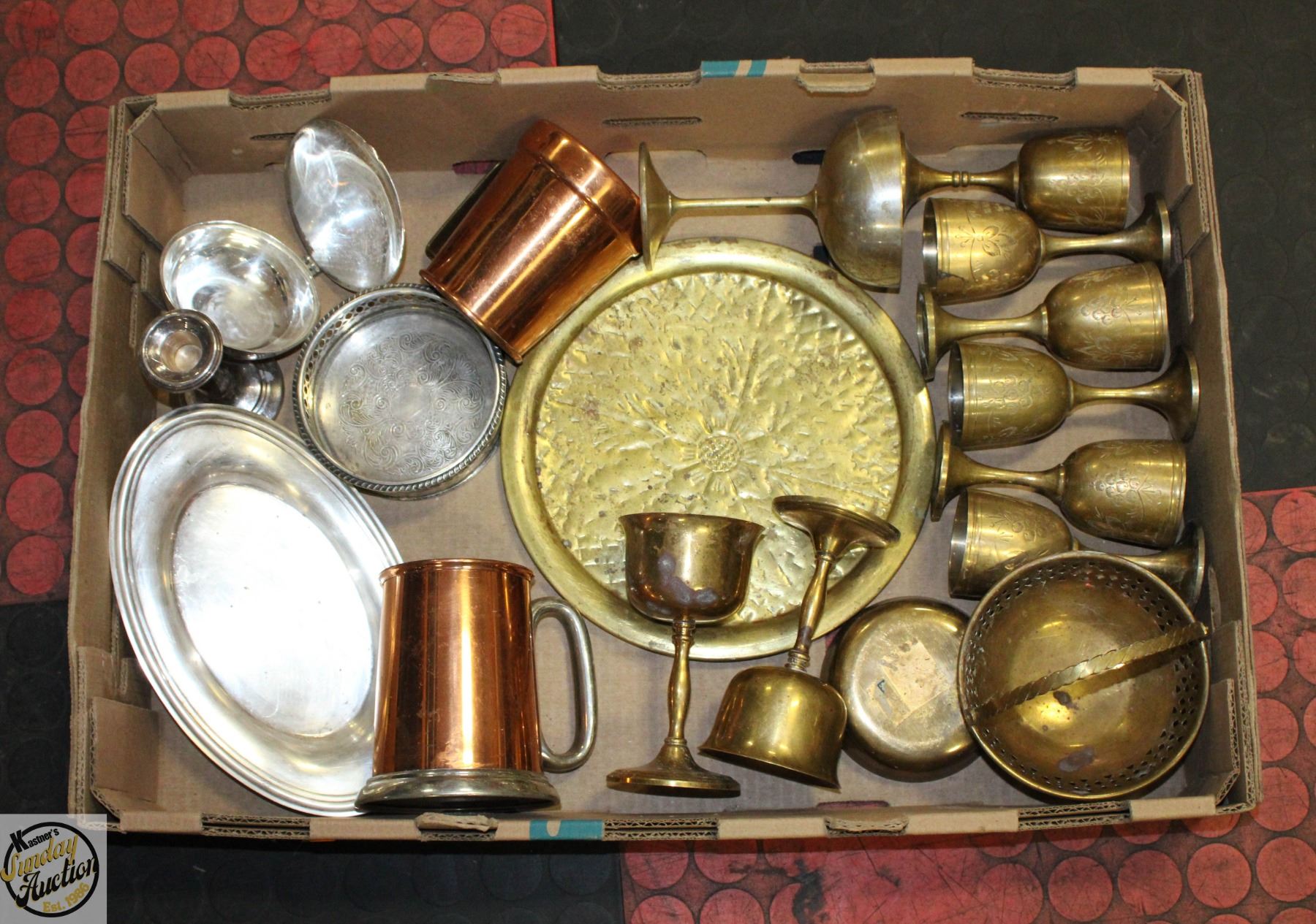18PC SILVER PLATED SERVINGWARE BRASS, COPPER, ETC