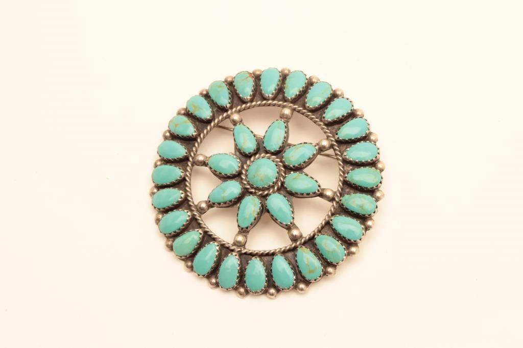 Vintage silver and turquoise pendant or pin signed “RN” and sterling. Est.: $75-$150