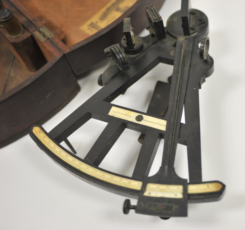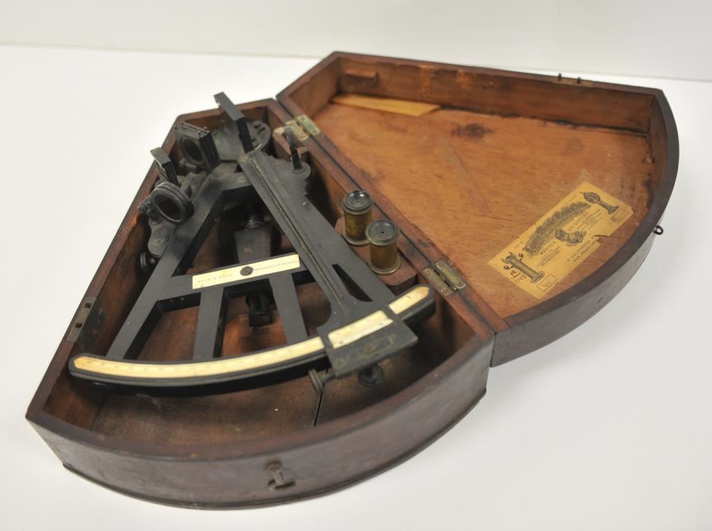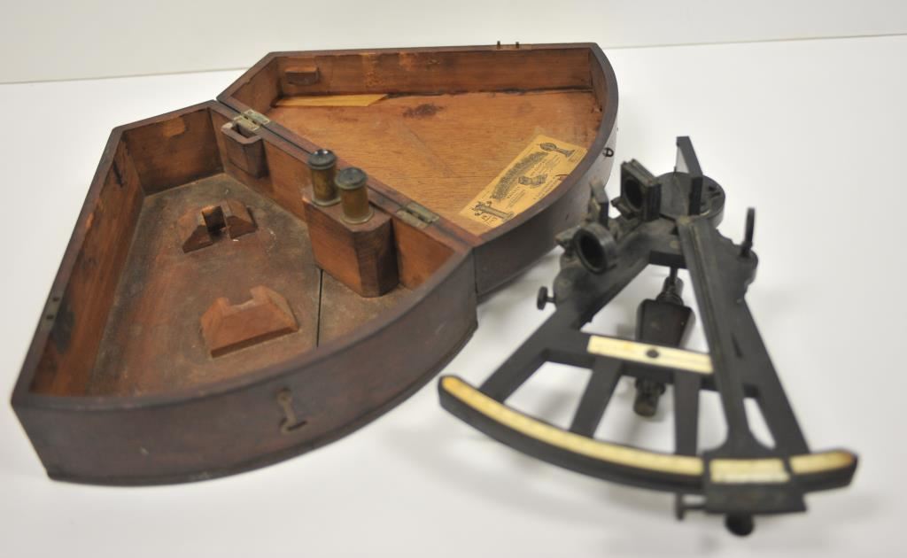 Sextant, 1840's-50's, marked Gary & Keen, Liverpool England, with San Francisco label in lid of wooden case. Gold Rush era manufacture. Est. $400-800