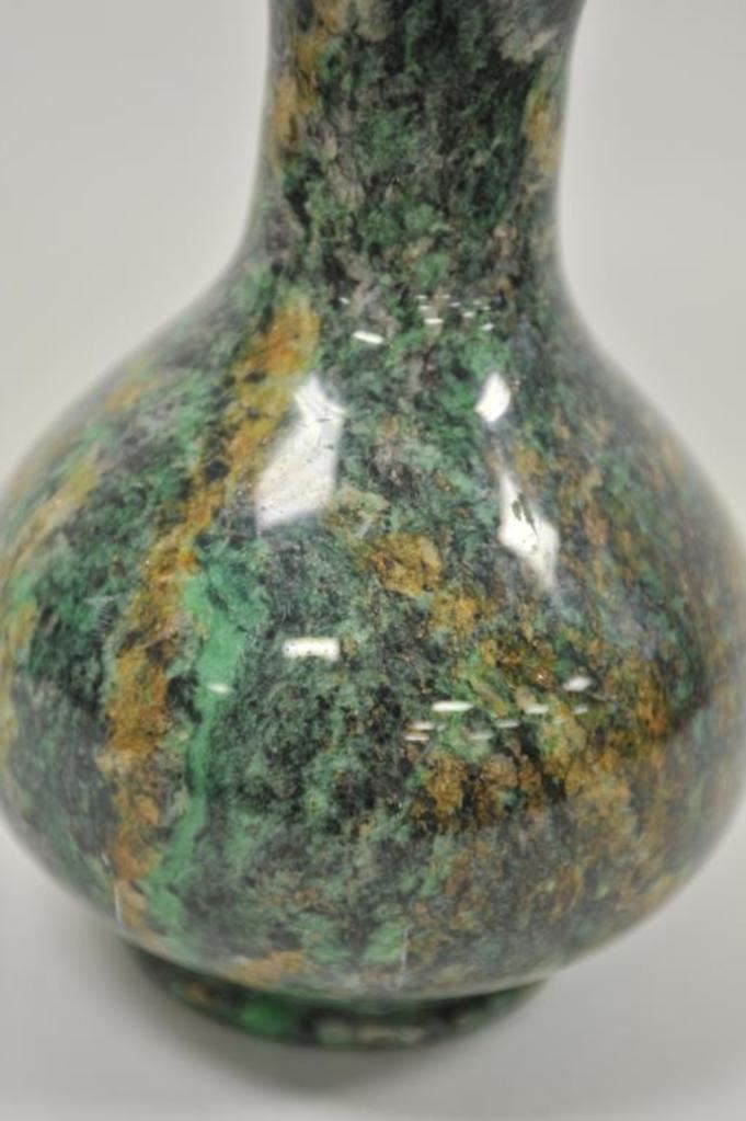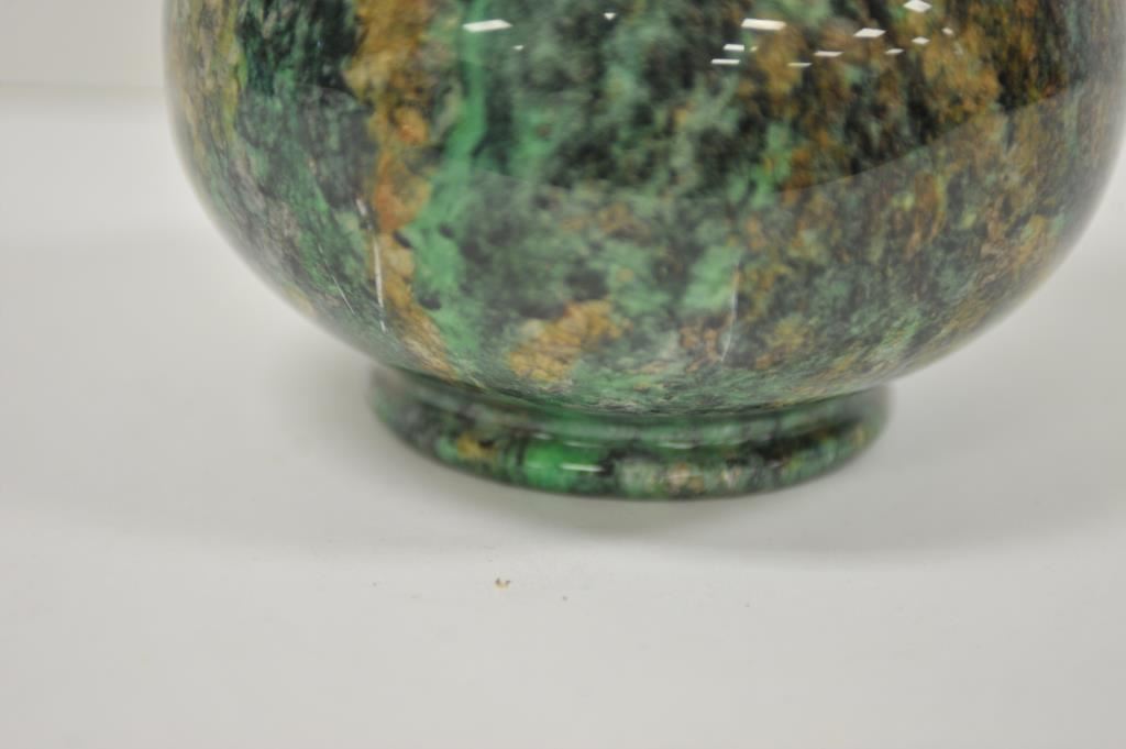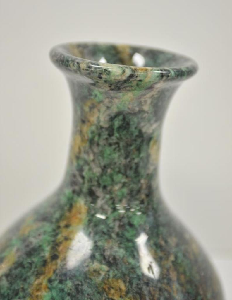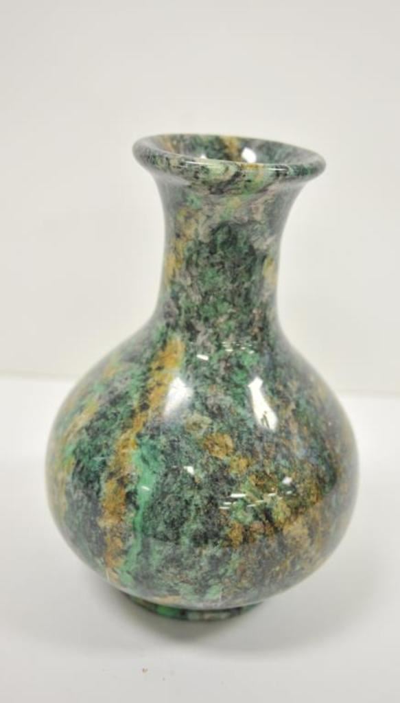 Beautiful workmanship in a multi-color heavy granite vase; approximately 12” in height; overall very good condition (think of the size of a piece of granite needed to make this vase and the work to accomplish the end result!). Est.: $350-$700.