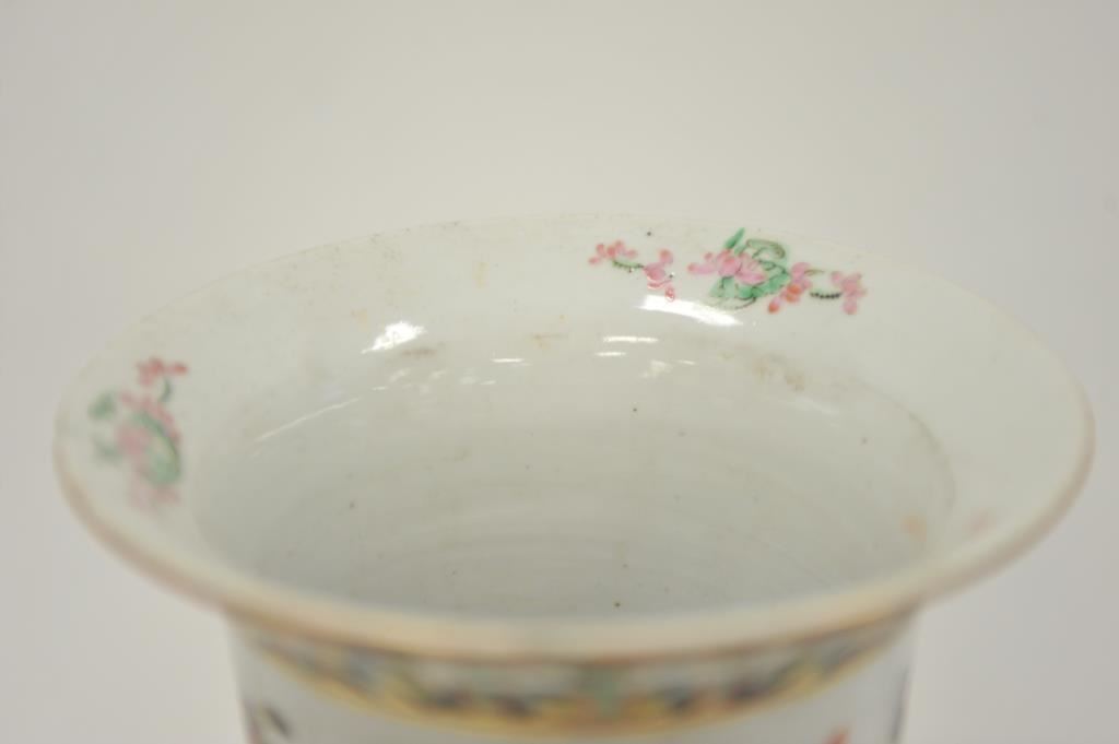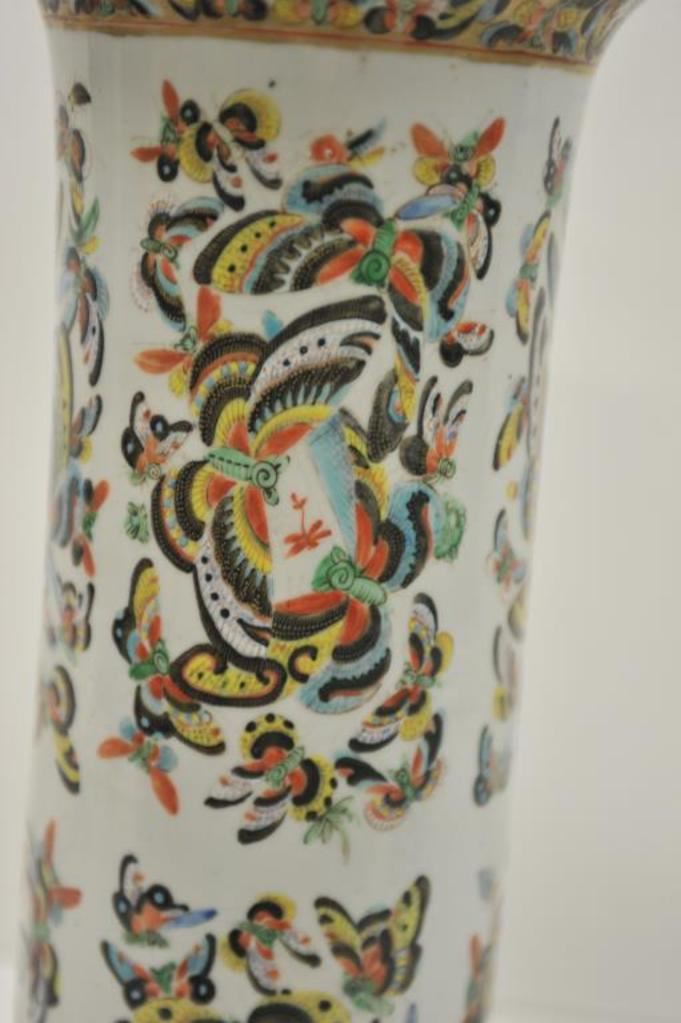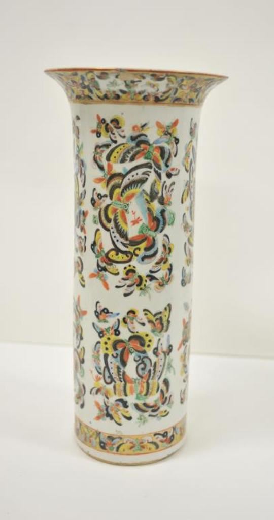 Large Chinese decorated vase or umbrella stand, approximately 18” in height, some minor old chips to upper rim. Est.: $150-$300.