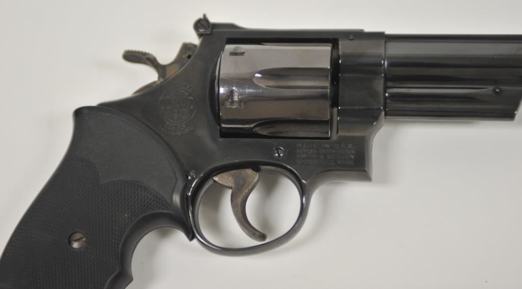 Smith & Wesson Model 29-2 .44 mag double action revolver with a 6 ½” barrel, target sights and features with Pachmeyr grips added, S/N N687146. Fine to near excellent used condition. Minor index line on the cylinder with some signs of use. 95%-98% overall. Shows older quality production. (Modern/PPT) Est.: $700-$1400