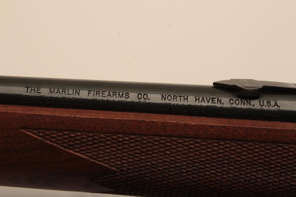 Marlin Model 336C Lever action rifle in .30-.30 caliber, S/N 19001539. Mounted with quick detachable sling swivels. Factory recoil pad. Very good plus to almost fine used condition. Minor scratches and signs of use. 96%-98% overall. (Modern) Est.: $300-$600