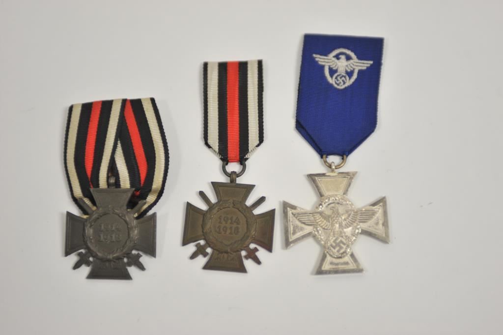Lot of 3 German Medals, Police Long Service, 2 Hindenburg Crosses. Est:$60-120