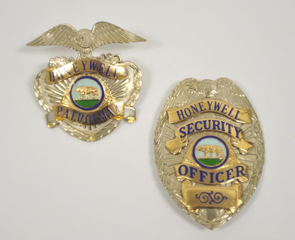 Set of 2 Hat & Uniform Badge Honeywell Patrolman maker Sun Badge Est:$30-60