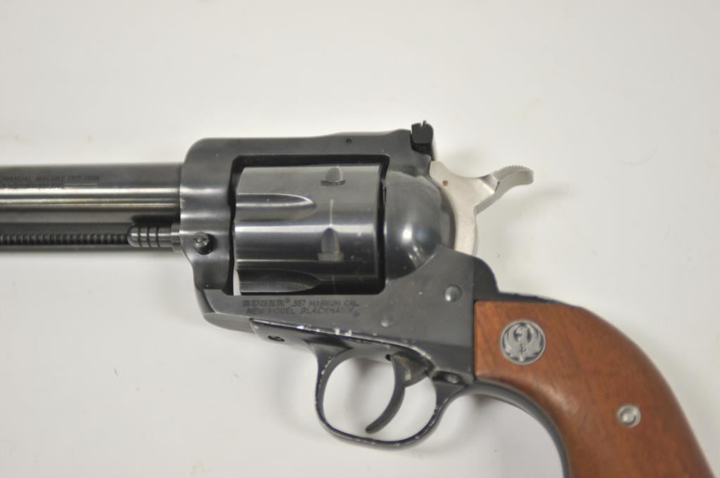 Ruger Blackhawk .357 Mag caliber single action pistol with a 5” barrel, S/N 37-15032. Very good used condition. Has transfer bar. Some edge wear to finish. (Exempt/No PPT) Est.: $250-$500