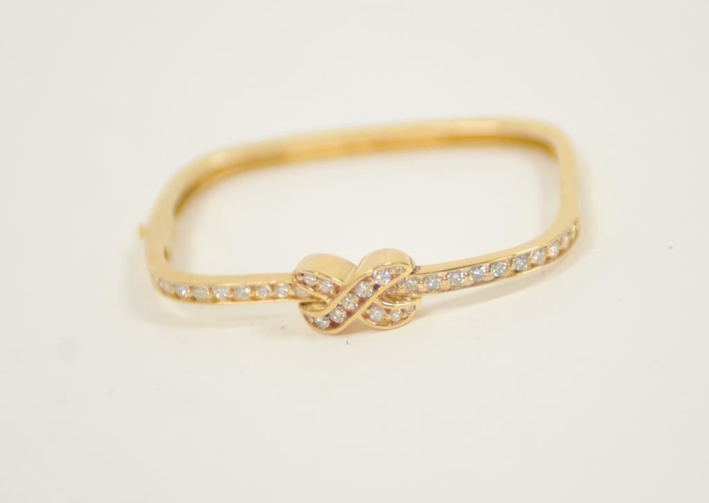 Fancy diamond bracelet in 14K yellow gold. Estimated weight of 64 round brilliant cut diamonds 1.75CT-2CT total. Weighs over 9 grams or nearly 1/3 Oz, 14K. Good quality. An estate piece. Est.: $600-$1200