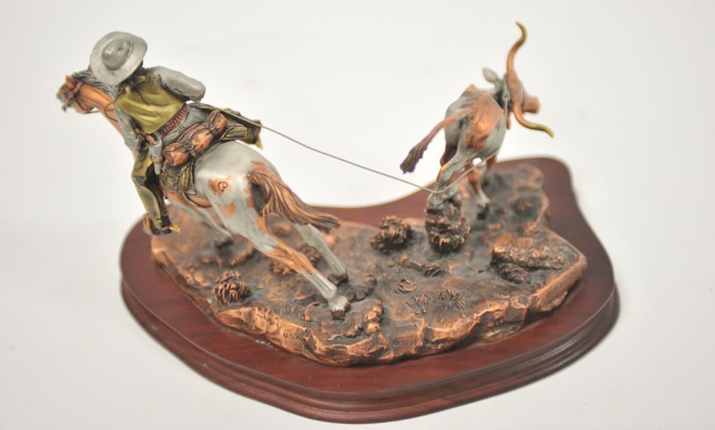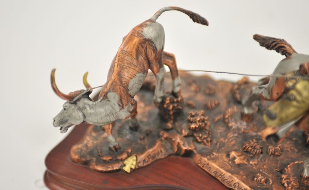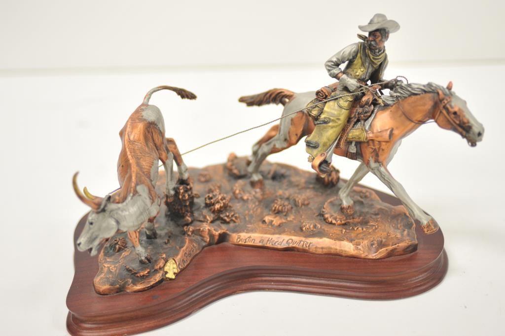 Legends art casting entitled “Bustin a Herd Quitter” by C.A. Pardell. Measures 6”x10” not including base. Original issue cost approximately $600. Est.: $150-$300