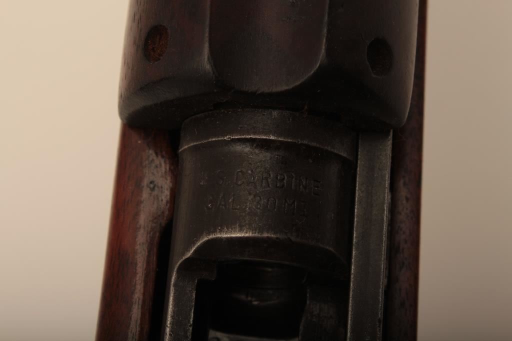 U.S. M1 Carbine manufactured by Underwood with matching barrel dated 3-44, S/N 2902071. Arsenal returned and updated with unmarked military replacement stock, late sight, bayonet lug and etc. No import marks. Good to very good condition oveall. Very bright bore. Some light coating of finish on the stocks (Wax/Linspeed type) but not sanded. (C&R) Est.: $500-$1000