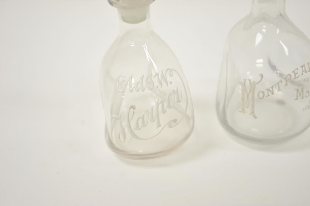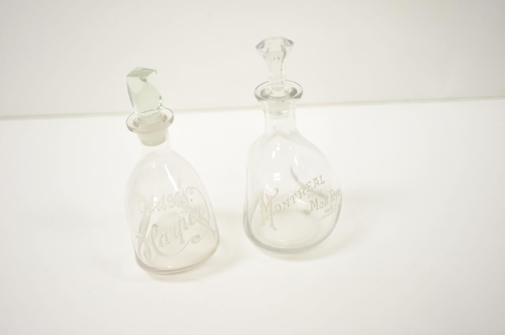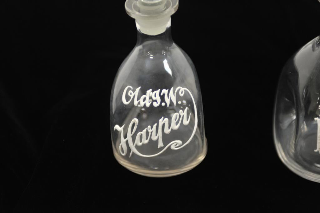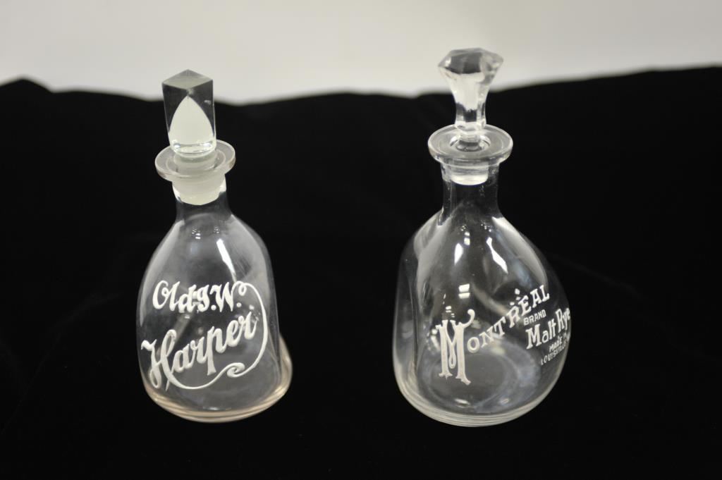 2 Back bar pinch bottles, Montreal and Harpers Whiskeys, with stoppers. Good plus. Est. $150-300
