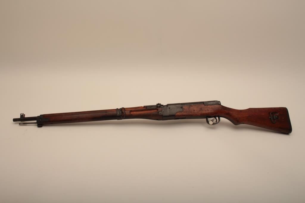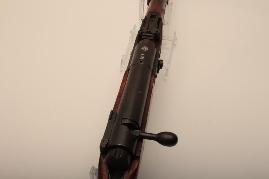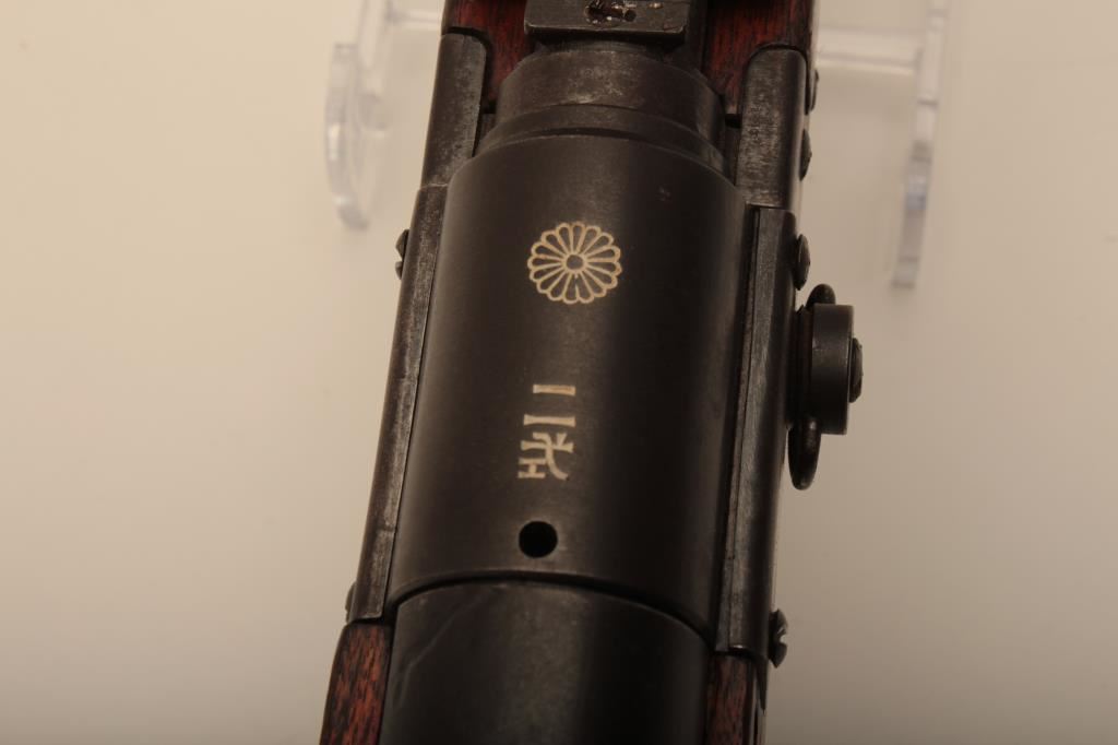 Japanese Arisaka Paratrooper takedown rifle, 7.7 cal., with Mum and Nagoya Arsenal markings, good to very good condition with 50-70% original blue, good stocks with dings, mars and minor imperfections. Bolt mismatched, dust cover retained, bore fair with dark areas. A good example. (C&R) Est. $800-1600