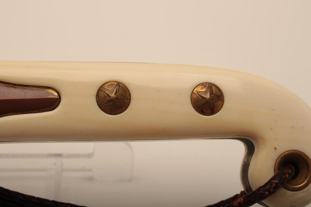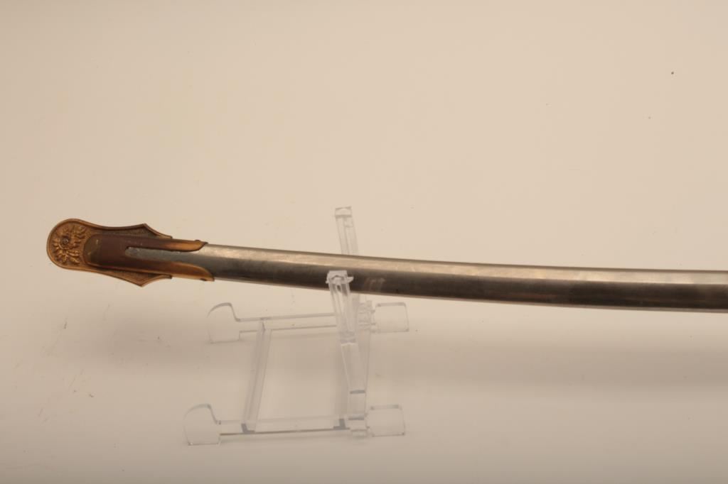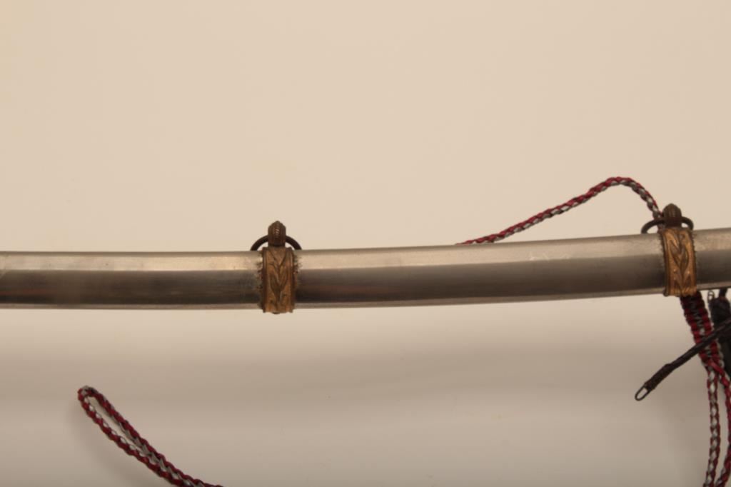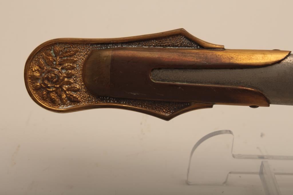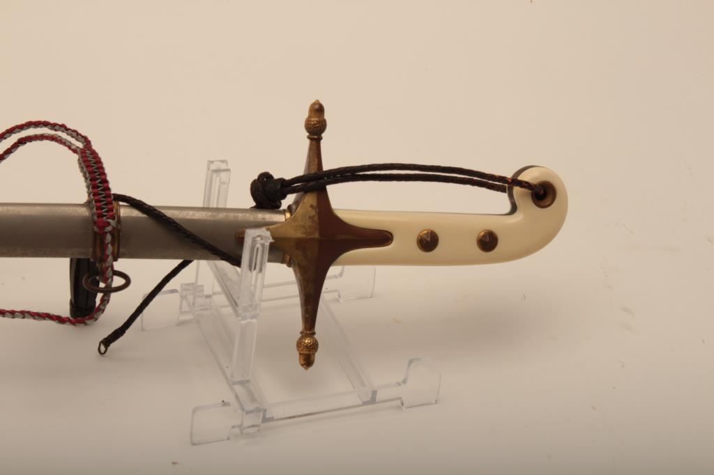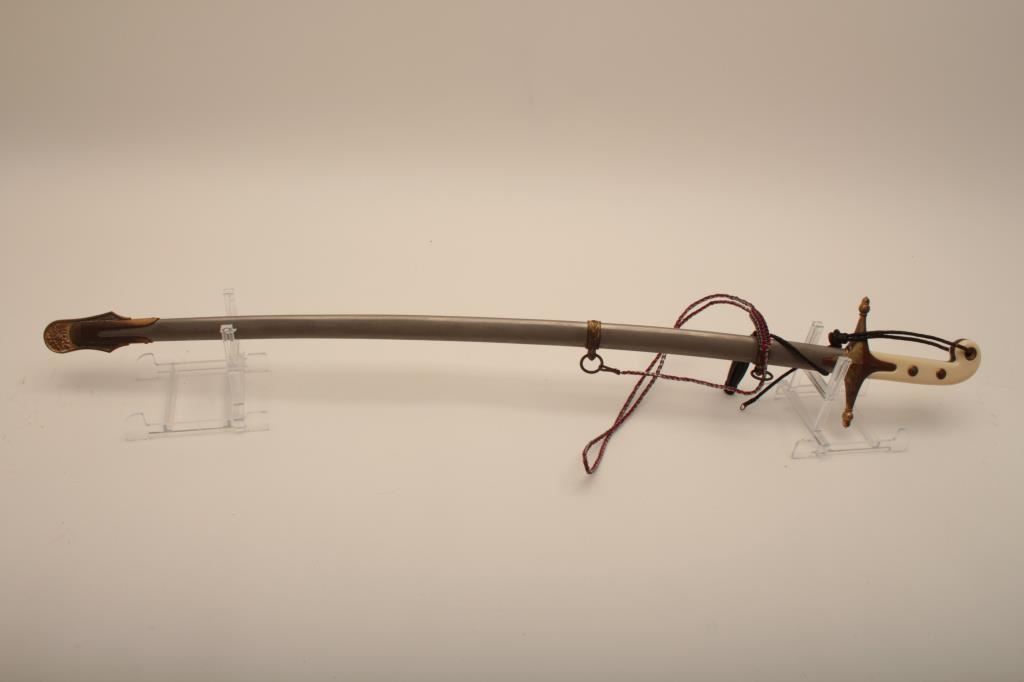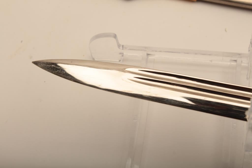 Marine Corps Mamaluke style Officer's sword etched Gordon Hill West. Includes sterling cigarette box engraved with Marine Corps emblem and "Lt. Col. Gordon H. West USMC From the Officers of 2nd Bn 11th Marines, 1st Marine Division, F.M.F., Korea, 1953". Sword near fine with minor oxidation, box hallmarked and signed Tack-Hing, very good plus, smal dents only. Collected many years ago by prominent City of Orange dealer. Est. $500-1000.