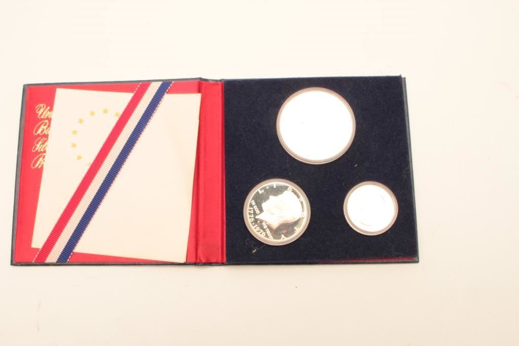 United states Mints Bicentennial 3 piece Silver proof set with certificate and in a display pack. Est:$50-100