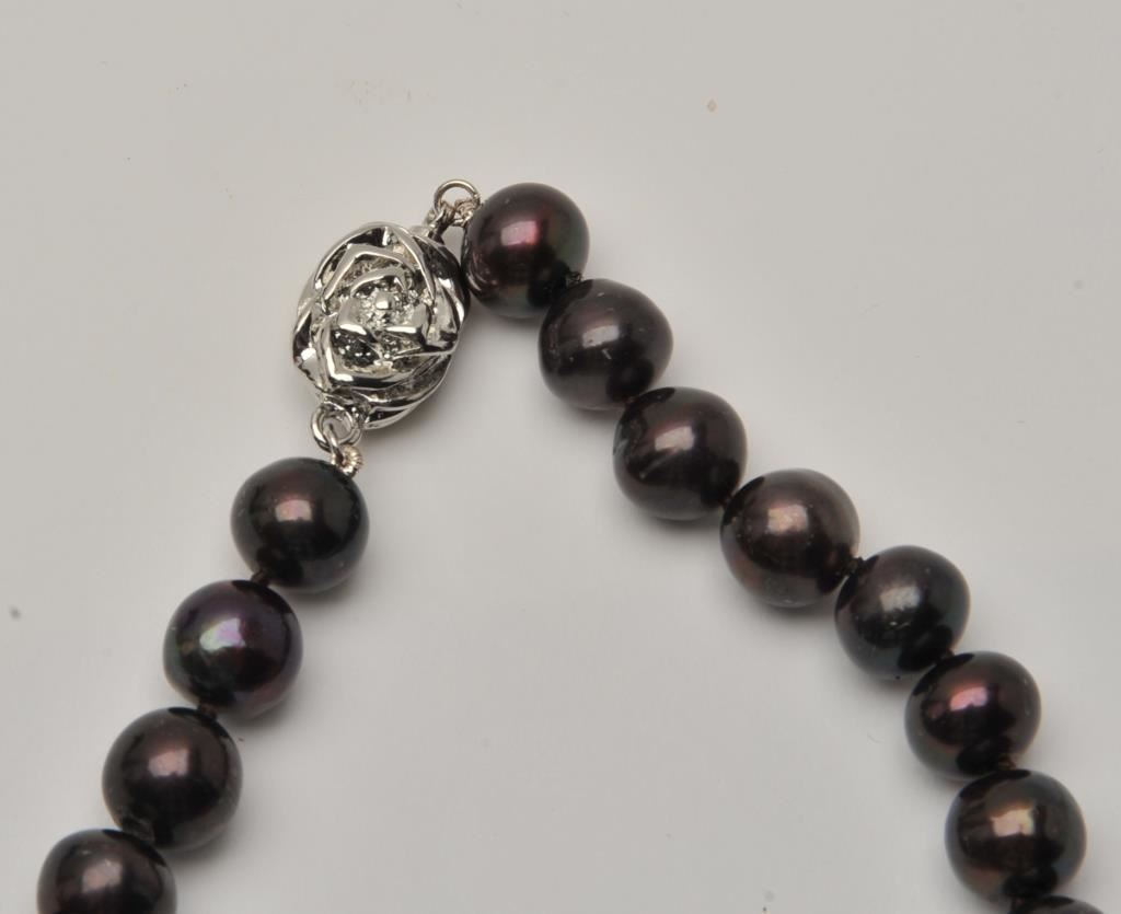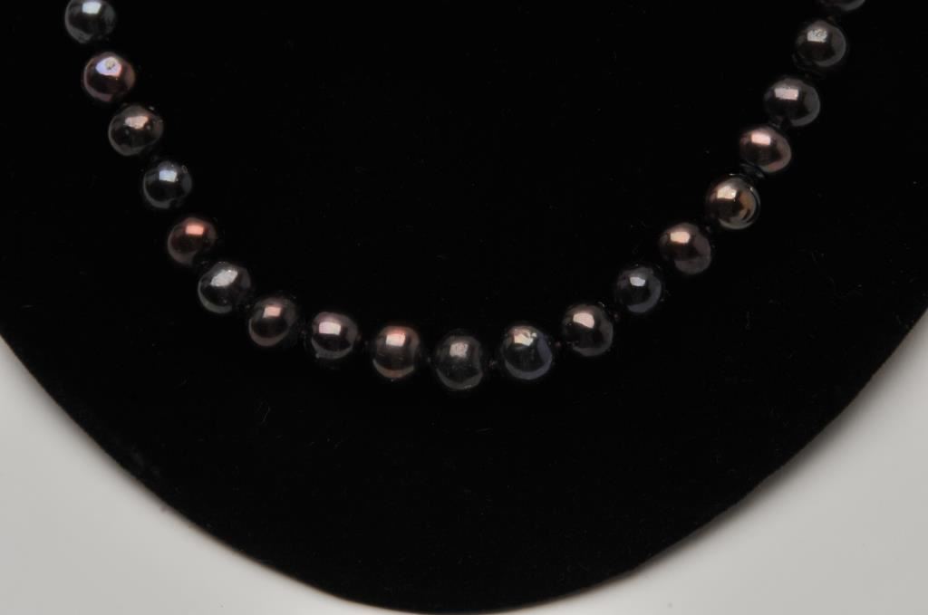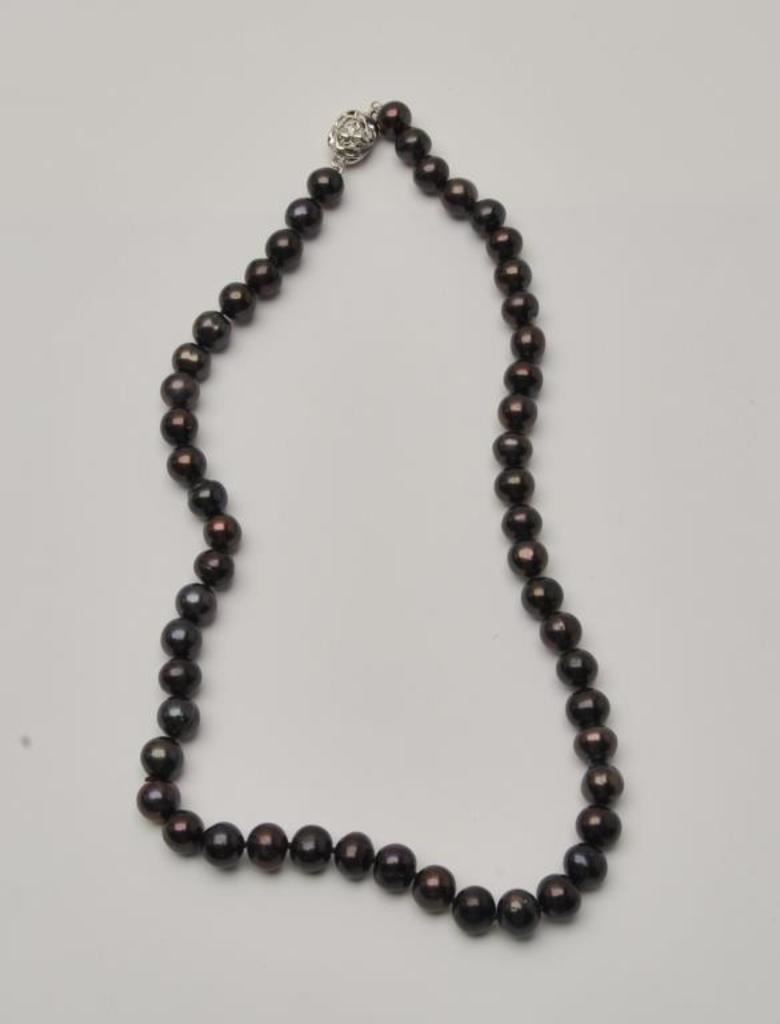 One strand of black/peacock colored pearls 10mm diameter and 21 inches long Est:$300-400