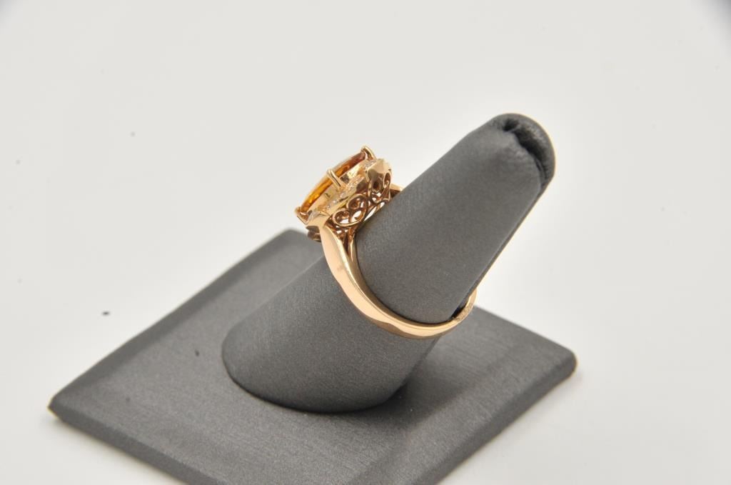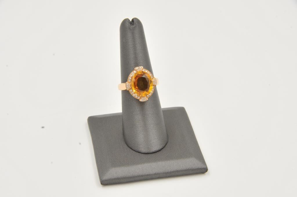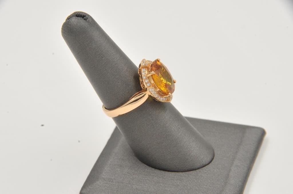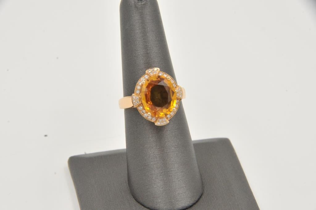 One fine hand fabricated 18k rosegold ring set with a clean orange (almost padparssha) sapphire and diamonds Est:$3000-3500