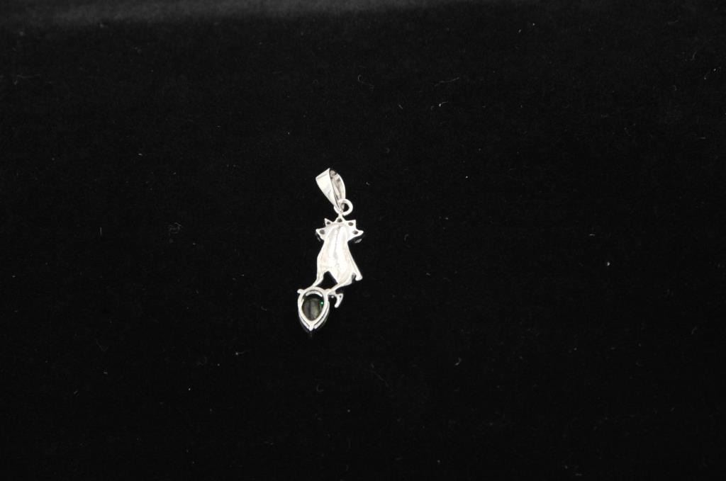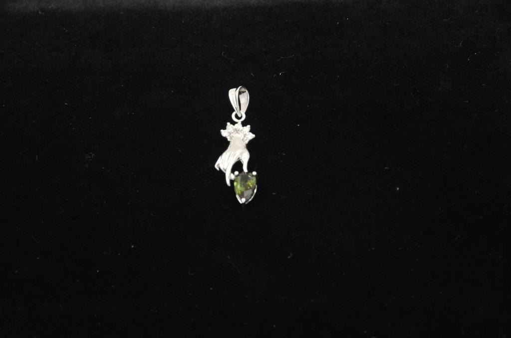 One 18k white gold pendant shaped like a hand holding a pear shape olive tourmaline Est:$450-550