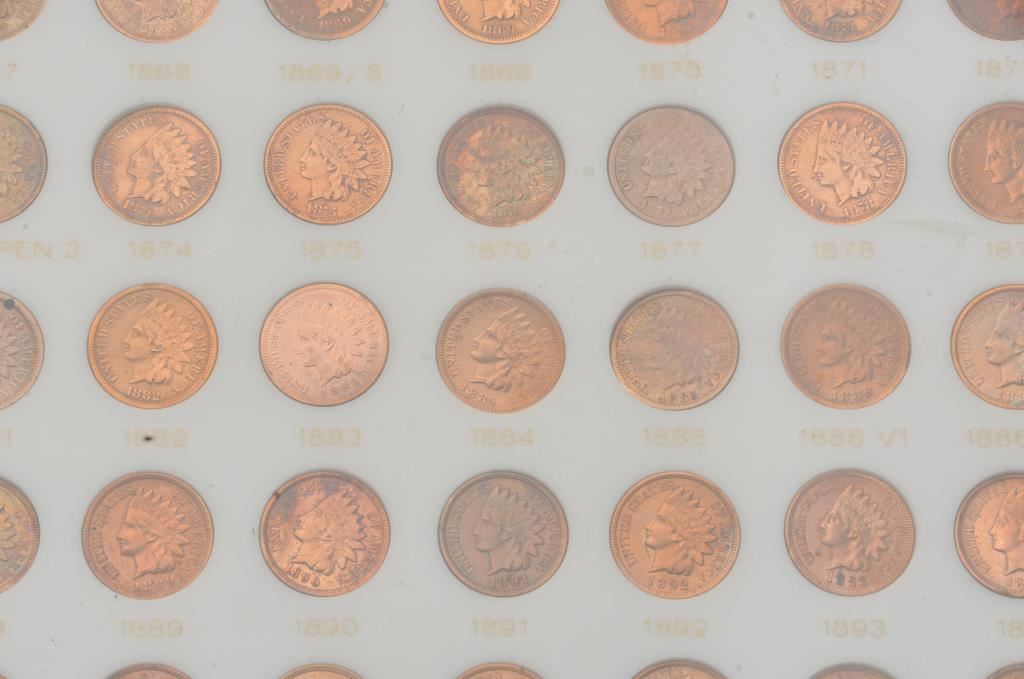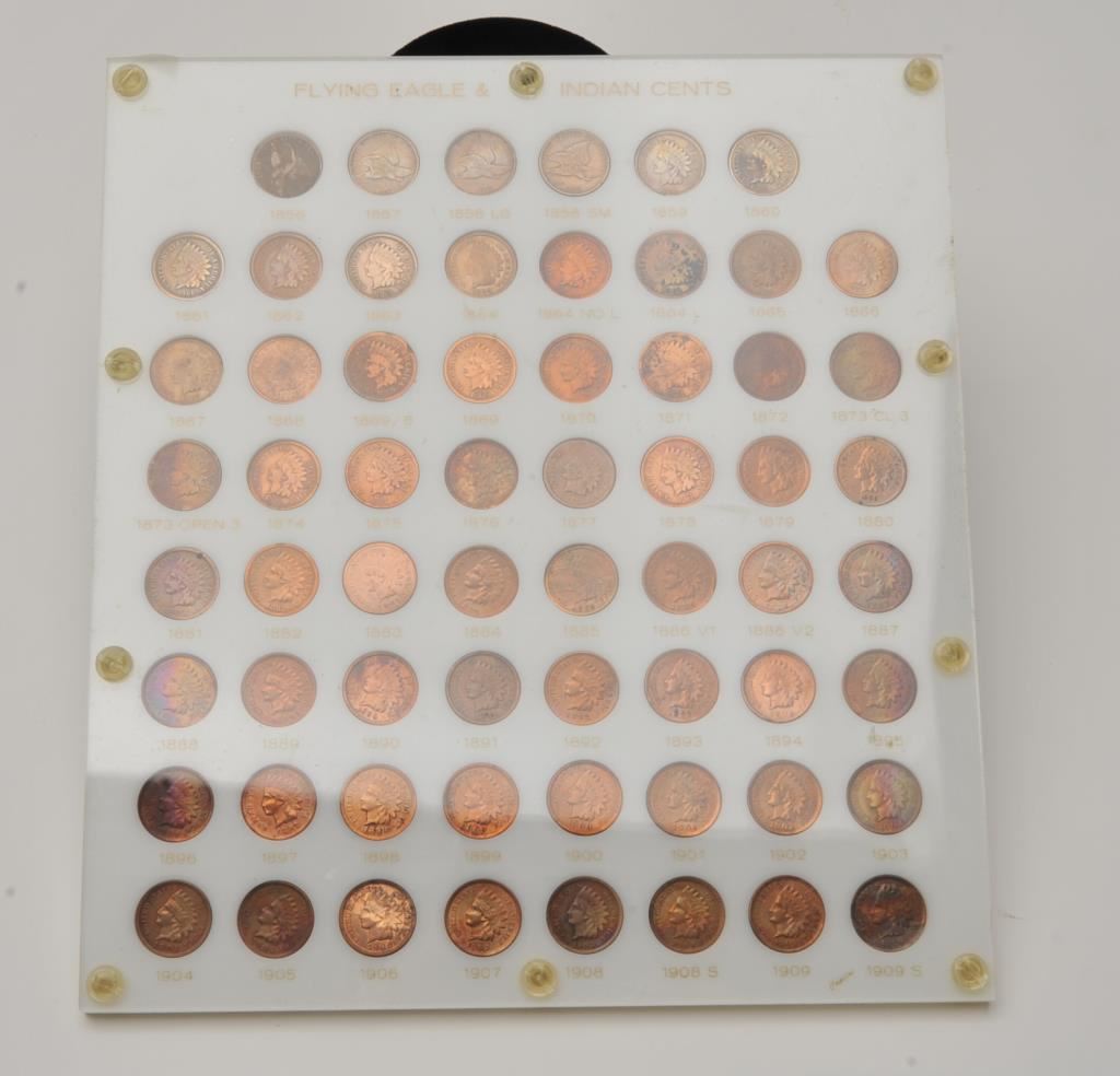 A lot of 4 flying eagle and 52 Indian head cent dating from 1856-1909 in fine condition(1 rare coin is $200) Est:$300-400