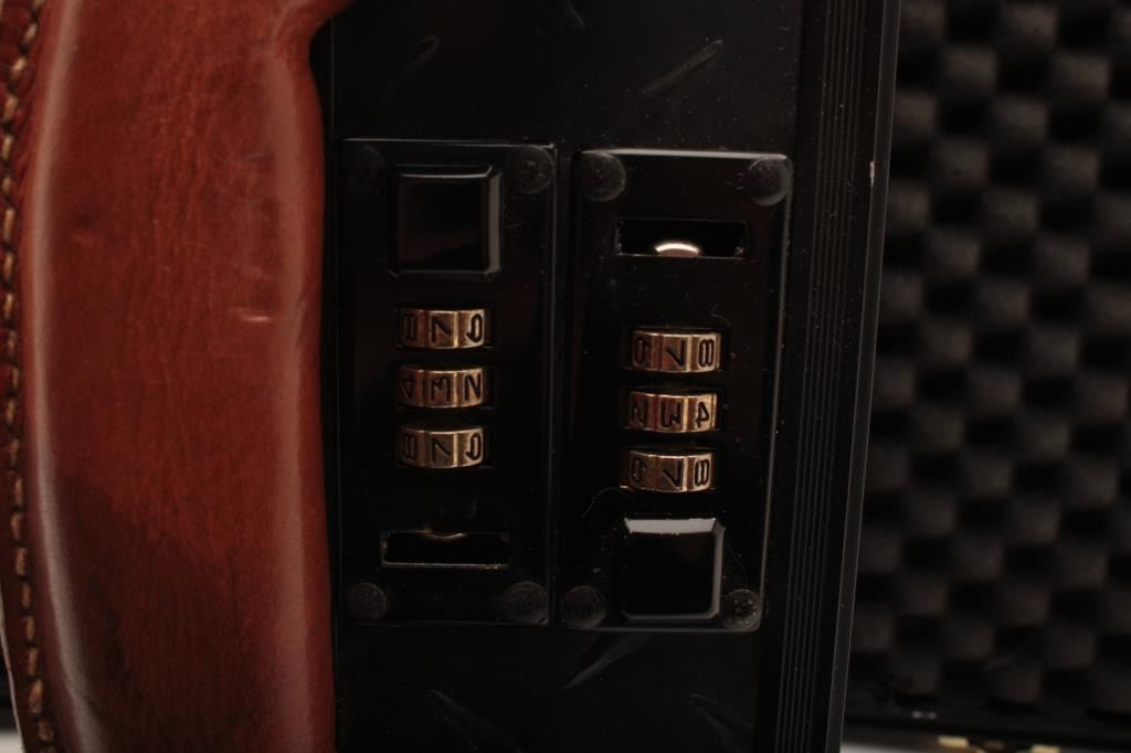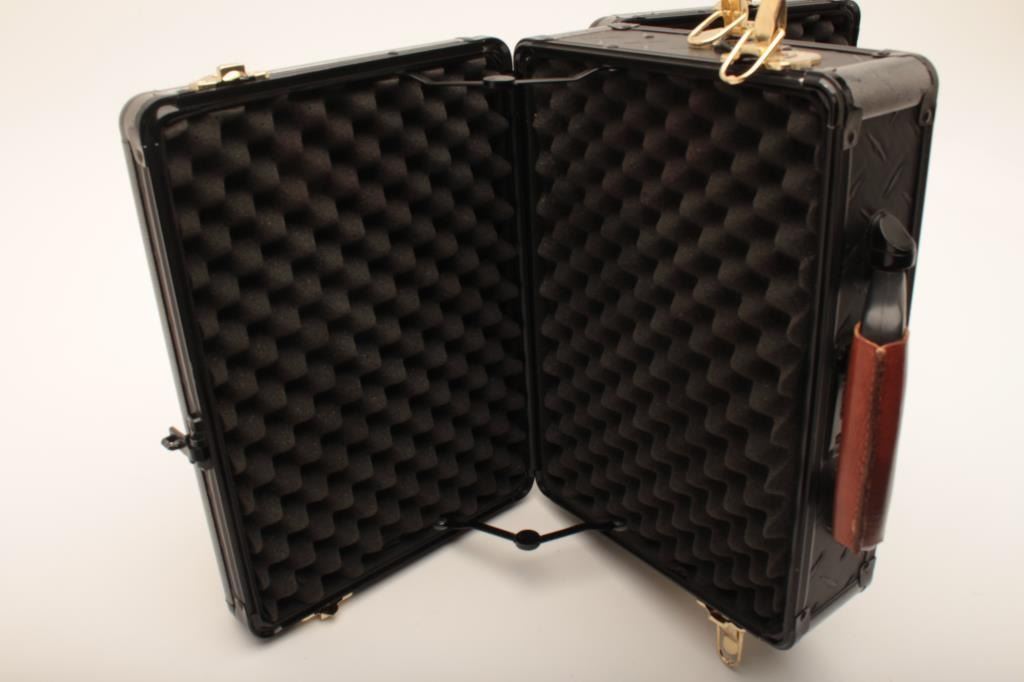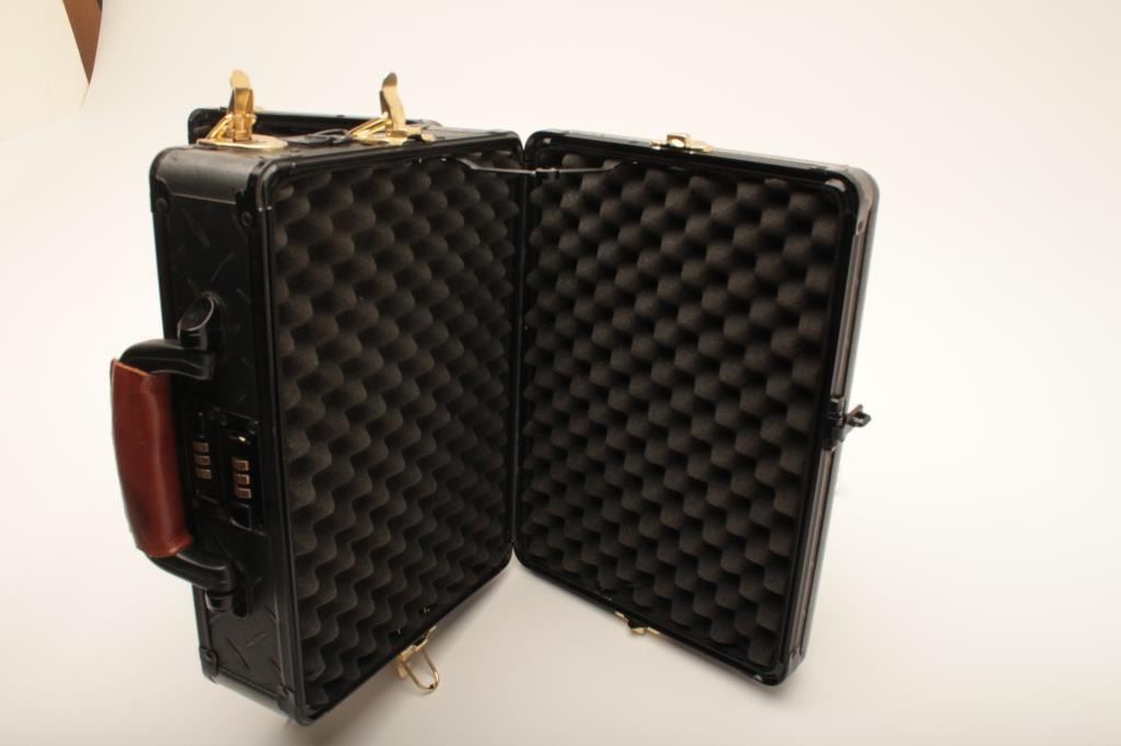 TZ Case Corp. four gun armored pistol case. The case is approximately 12 ½” x 9” with foam padded compartments on each side for two pistols. There are independent locks and latches on both sides of the case. The case is in very good overall condition. Est.: $25-$50.