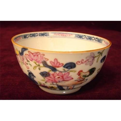 Circa 1770 Chinese Export Very Nice and Rare 18TH Century Chinese Export Teabowl decorated in underglaze blue and famille rose of roosters. The stunning tea bowl measures 1 3/4" in height and is almost 3 1/2" in diameter at the top opening. Dated to the quianlong period, the condition is excellent with no chips, cracks, or restorations.