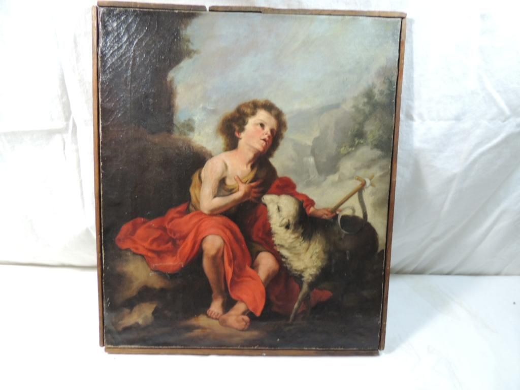 18TH CENTURY OIL PAINTING BOY WITH SHEEP AS SHOWN SEE PHOTO FOR MORE DETAILS.