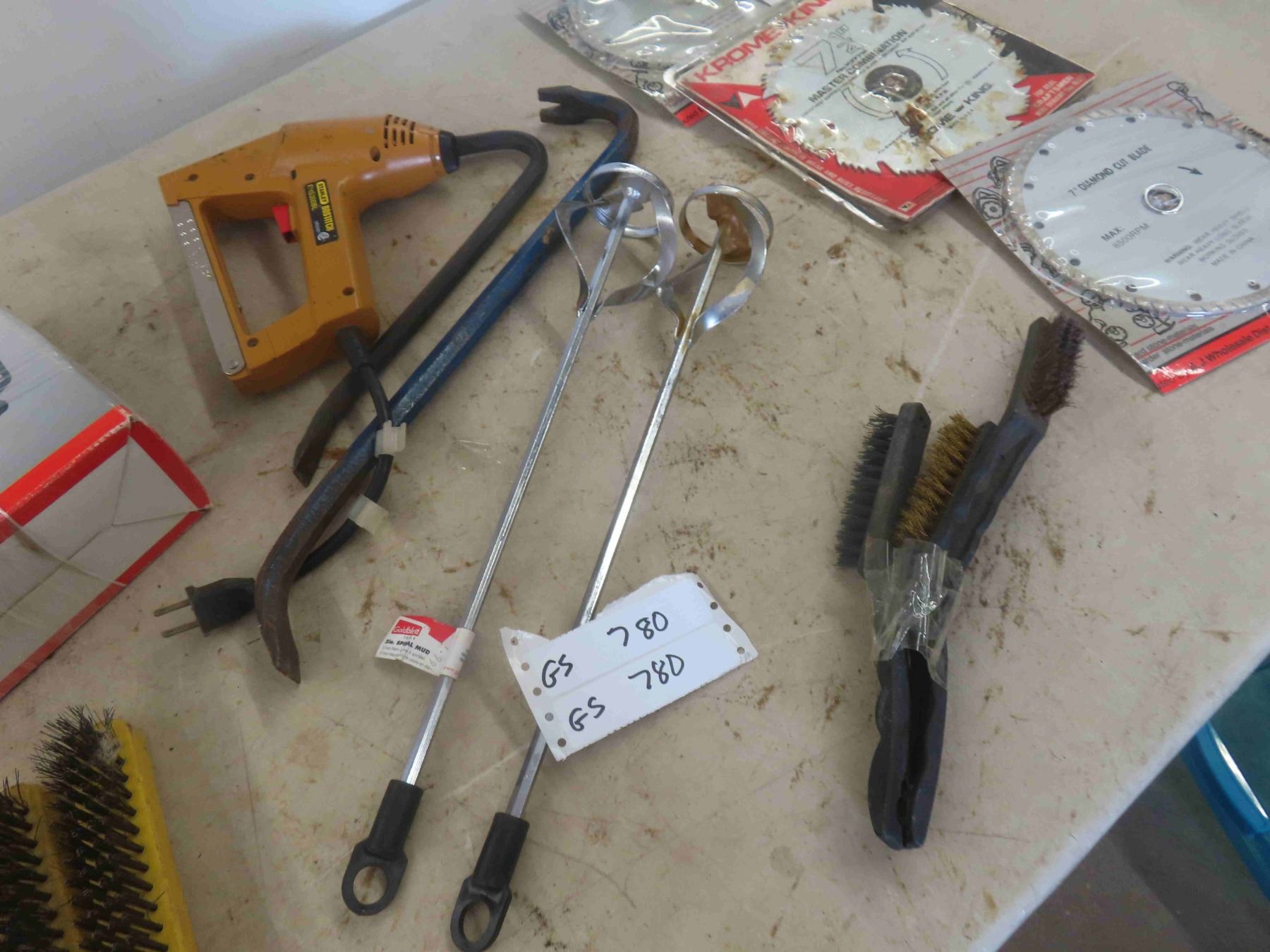 18V Jig Saw, Power Stapler, Wrecking Bar, Wire Brush, Circular Saw Blades