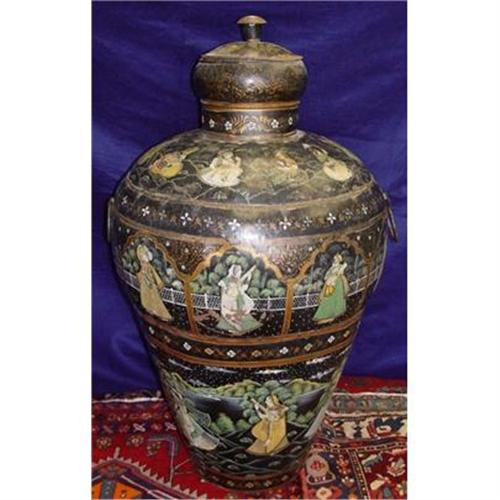 <tr><td>Title:18c Oil Painted Metal Indian Fertility Urn Vase</td></tr>