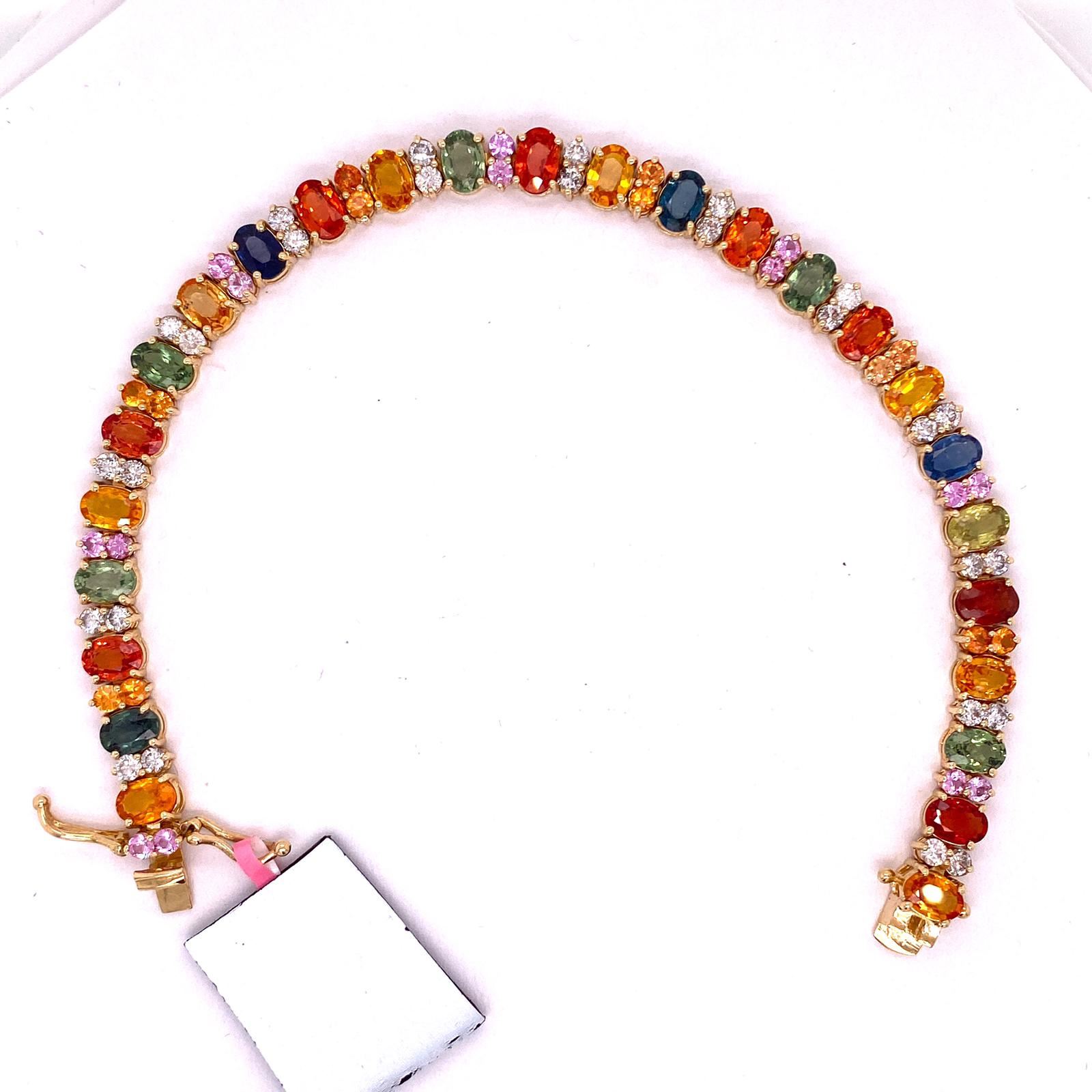 18ct MULTICOLOR SAPPHIRE 14K Yellow Gold 16.7gm Diamond 1.85ct Bracelet #SAP42