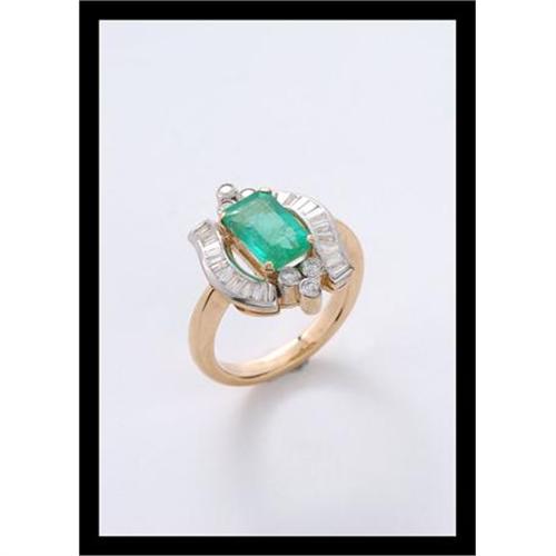 <tr><td>Title:18ct YELLOW GOLD RING WITH DIAMOND AND EMERALD.</td></tr>
