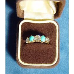 18ct gold dress ring set three diamonds and two turquoise stones approximately 1ct