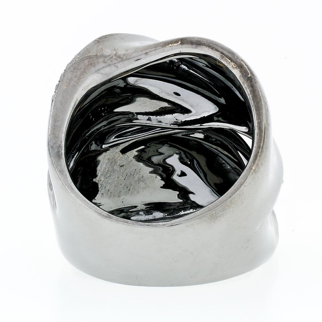 A modernist solid 18k gold ring plated with black rhodium and set with 55 round brilliant cut natural diamonds (G/H - VS1/VS2; 0.56ctw). The ring is size 7.0, weighs a total of 16.83 grams, and measures 22.27mm wide.