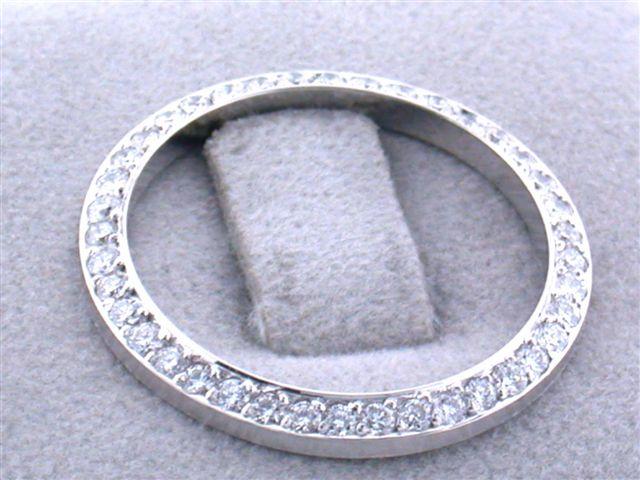 18k White Gold Bezel w/ Diamonds - 0.81 carats in G color and VS clarity; 1 inch in Diameter and weighs 3.2 grams