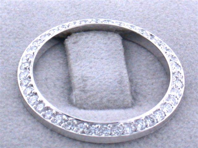 18k White Gold Bezel w/ Diamonds - 0.81 carats in G color and VS clarity; 1 inch in Diameter and weighs 3.2 grams