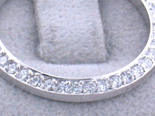 18k White Gold Bezel w/ Diamonds - 0.81 carats in G color and VS clarity; 1 inch in Diameter and weighs 3.2 grams